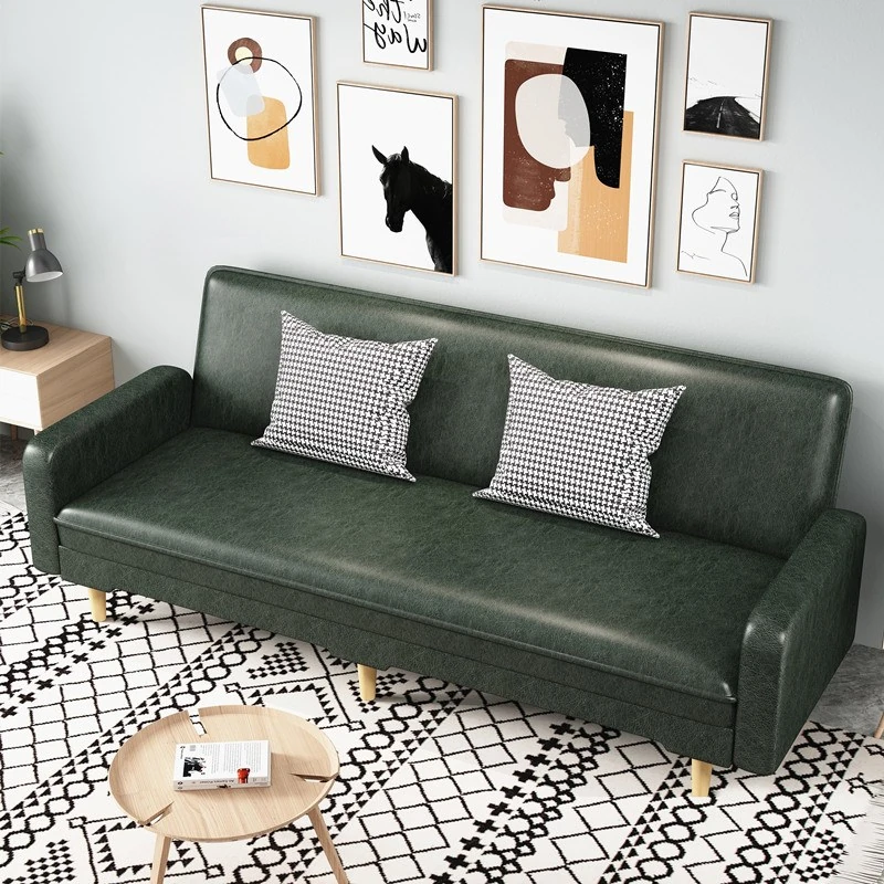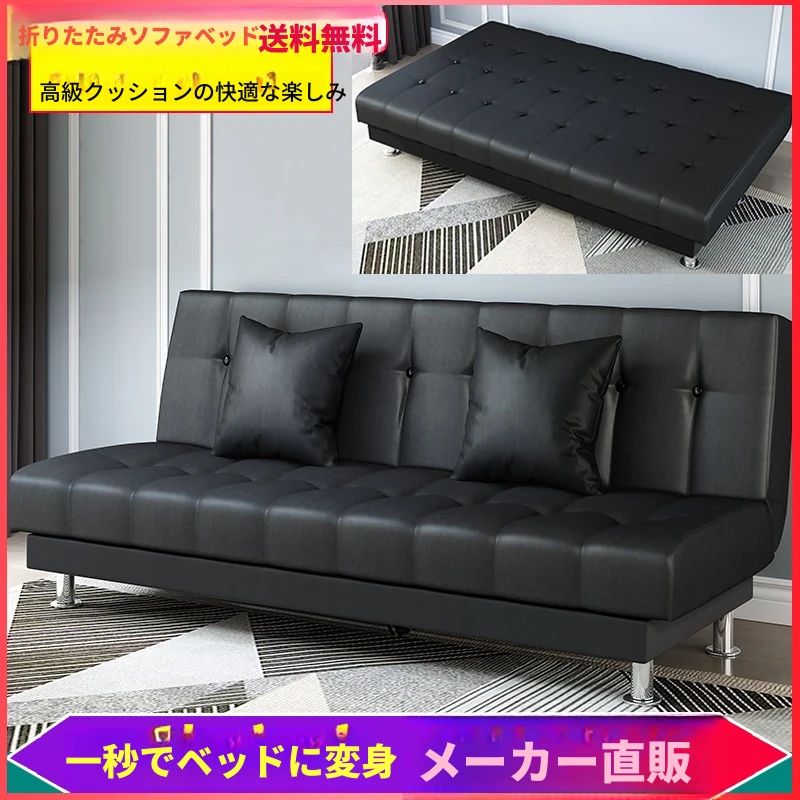 小型レンタル物件に最適!PUレザー風折りたたみソファベッド、1.8mのリビング用簡易デザイン。1.2mのY字型で、快適な寝心地を提供します。限られたスペースでもスタイリッシュに!