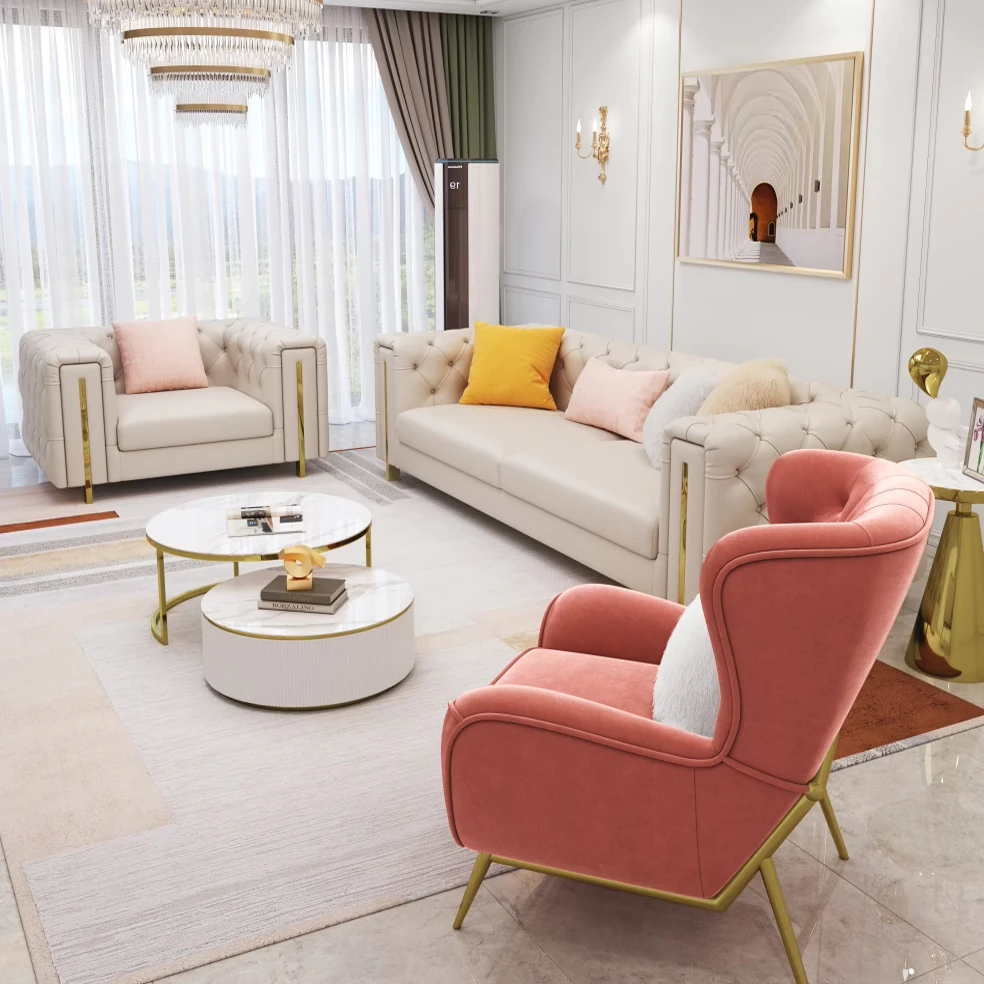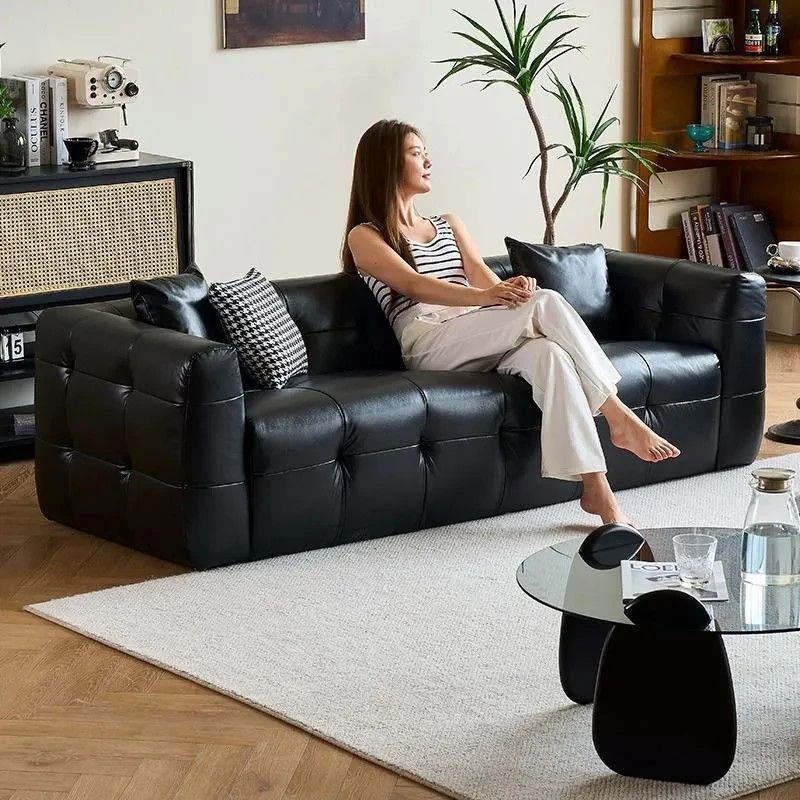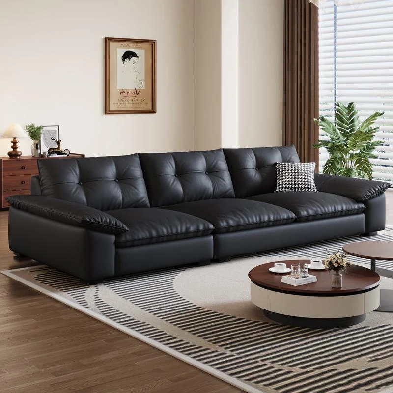 イタリアンスタイルのラグジュアリーなミニマルデザインソファ|アメリカンスタイルのボタン付きソファ|佛山産の高級本革使用!心地よい座り心地と洗練された美しさをあなたのリビングに。