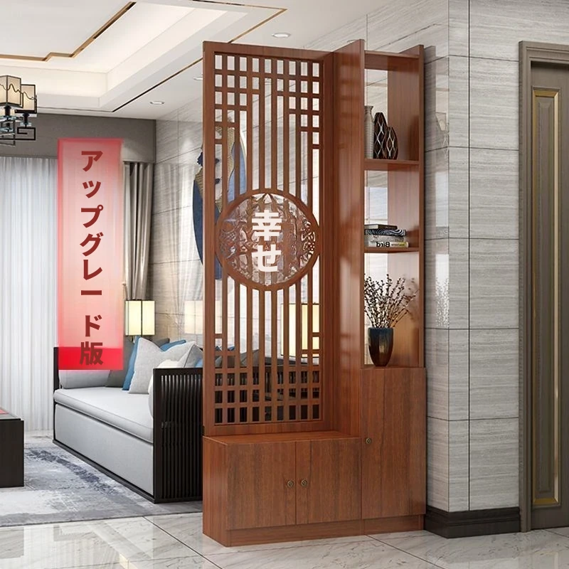 【工場直販】新中式高級玄関スクリーンパーテーション H型リビングシューズキャビネット一体型 デコレーション収納 - スタイリッシュな空間演出を実現!