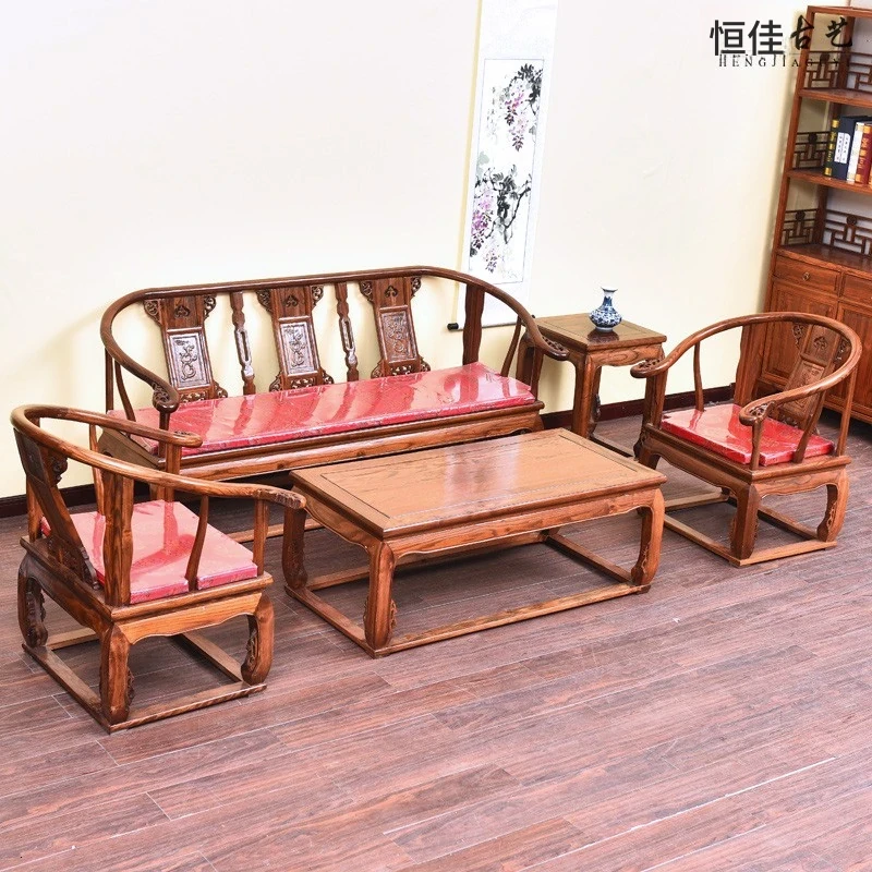 中式紅木古典全実木明清風格の南榆木家具、豪華な皇宮椅子とソファの5点セット、優雅な太師椅子付き!高級感あふれるインテリアで、あなたの空間を華やかに演出します。