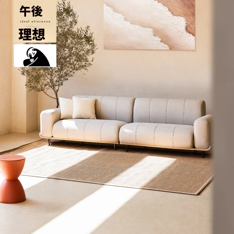 アメリカンスタイルの軽奢華ファブリック&レザーコンビソファ - モダンミニマリストデザイン、小型スペースに最適なクリームトーンのストレートソファで、快適さとスタイルを両立!