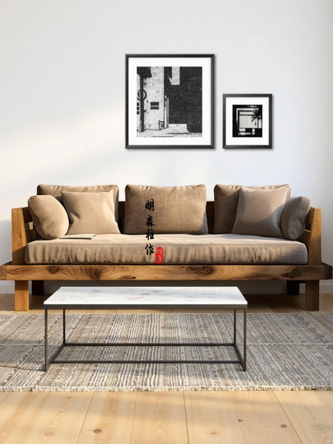和の美を感じる!2025年新作全木製侘寂風ソファ - 居心地抜群のリビング用ナチュラルソファ、小さなスペースにもぴったり。あなたの空間に心地よい雰囲気をプラス!
