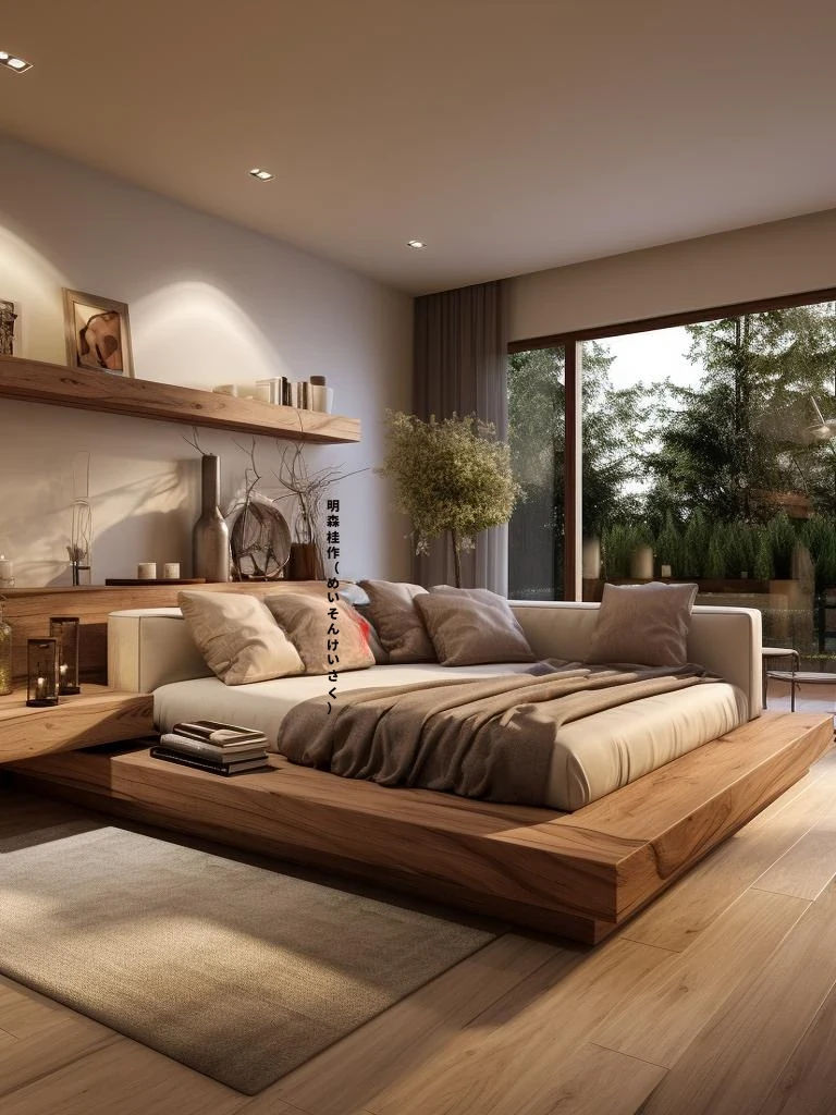 「和の心を感じる!地台ソファ・タタミベッド・無垢材家具が揃った癒しの空間を実現するアイテムリスト。侘寂風のコーナーソファチェアで、あなたのリビングを特別な場所に!」