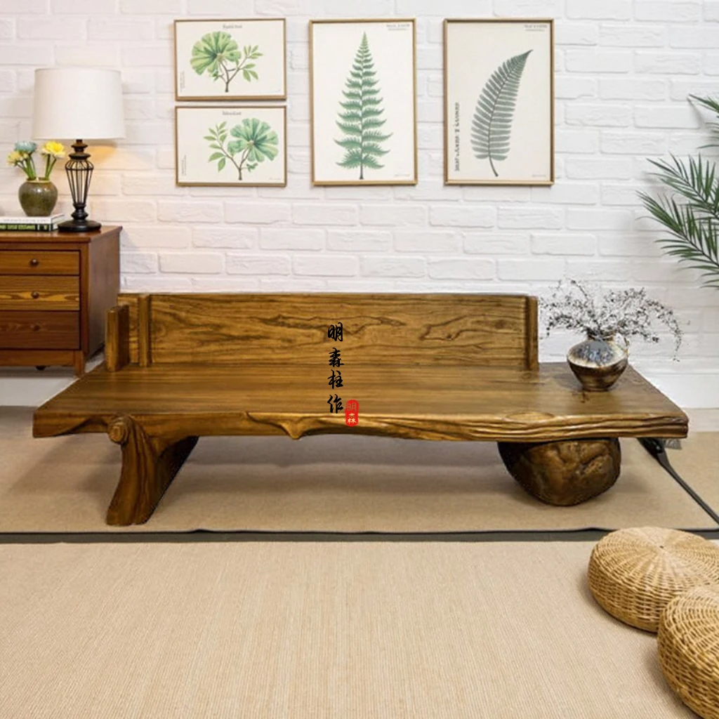 侘寂風の無垢材ローハンベッド - 和風畳ベッド、天然木製ソファベッド。民宿やホテルに最適な小型ソファ、シンプルで洗練されたデザインが魅力!