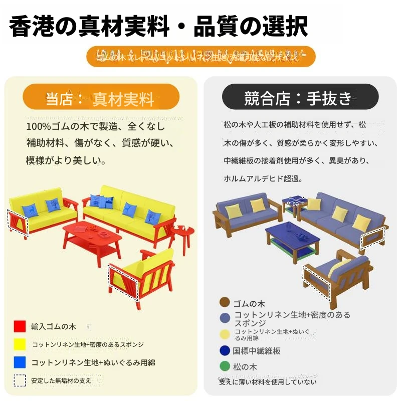 【香港送料無料】北欧スタイルの無垢材ソファセット、シンプルでモダンなデザイン!小さなリビングにもぴったりな布製の木製ソファで、快適な空間を演出します。