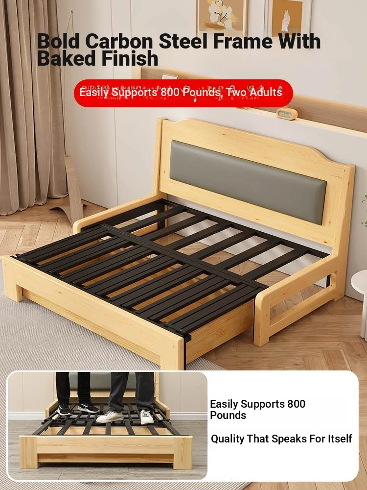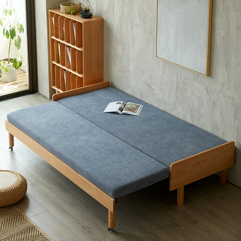 Space-Saving Folding Sofa Bed for Small Apartments - Dual-Use Solid Wood Pull-Out Bed for Singles and Couples in Living Room