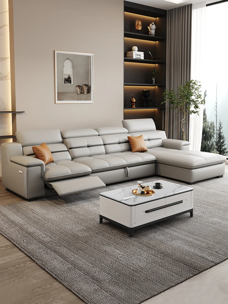 Smart Italian Leather Electric Sofa for Luxury Villas - Multifunctional Full Genuine Leather Couch for Your Living Room