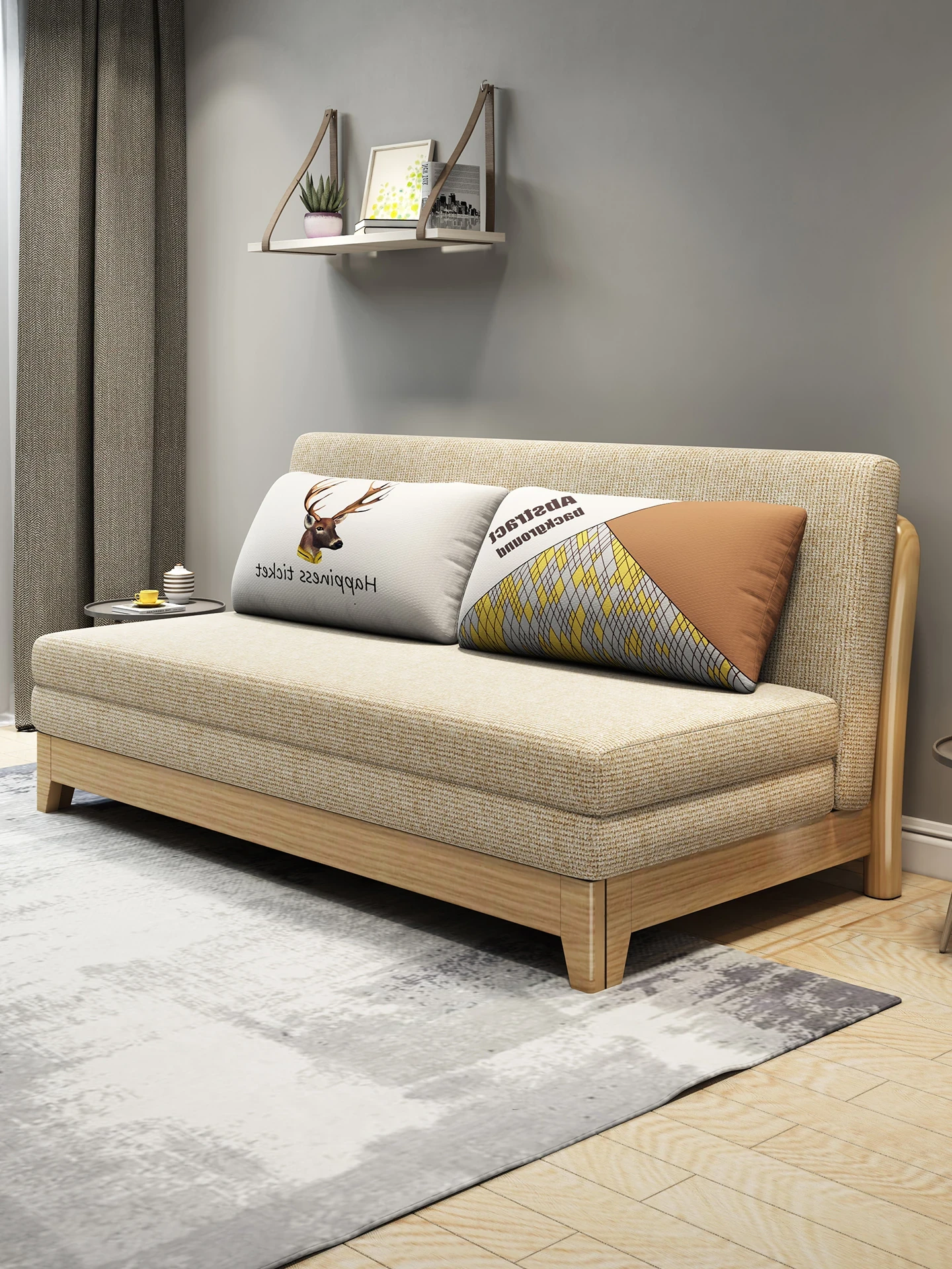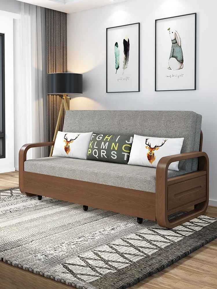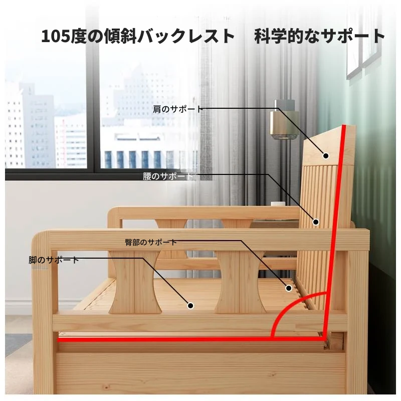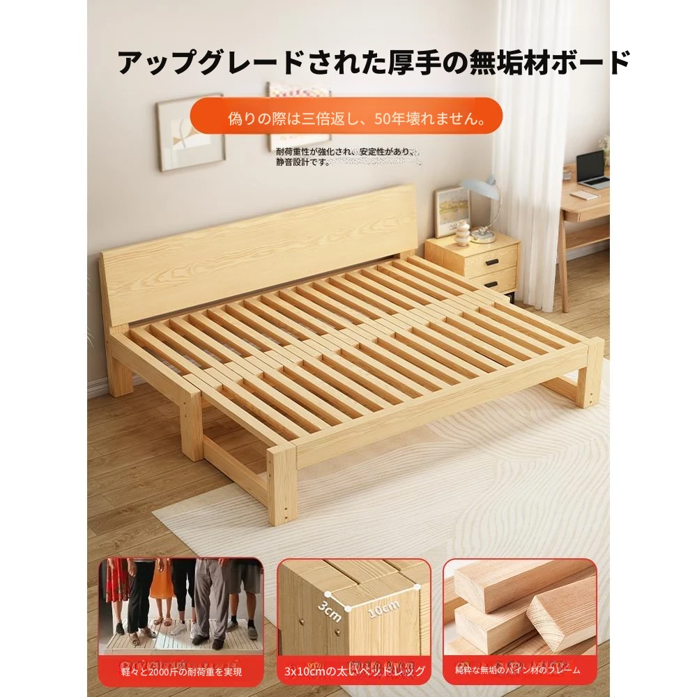 香港送料無料!折りたたみソファベッド - 小型リビングに最適な伸縮式の無垢材製プルアウトベッド。座る・寝るの多機能デザインで、快適な空間を実現!