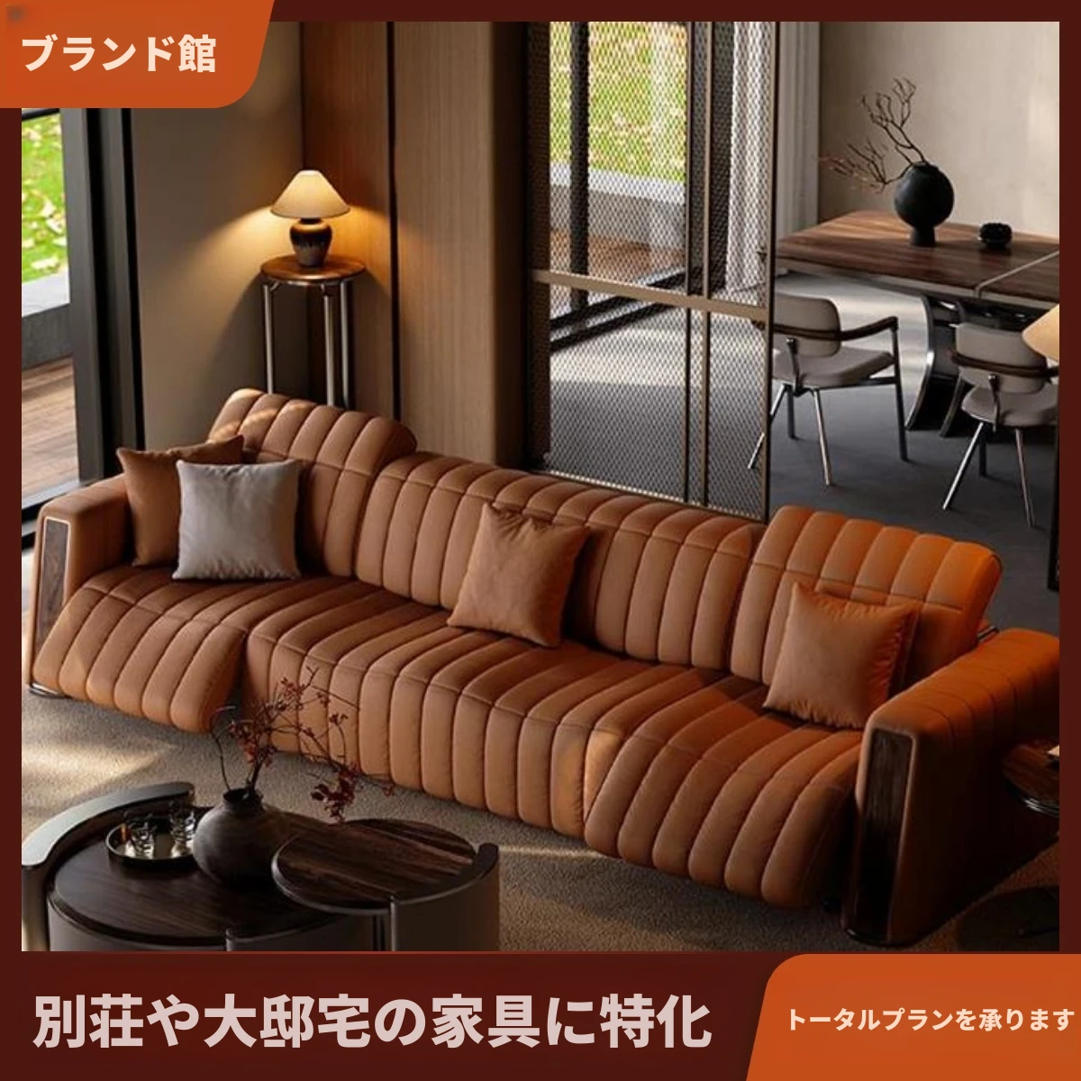 イタリアンレザーを使用した全自動電動ソファ - ラグジュアリーな大平面別荘リビングに最適!多機能で快適な居住空間を演出します。