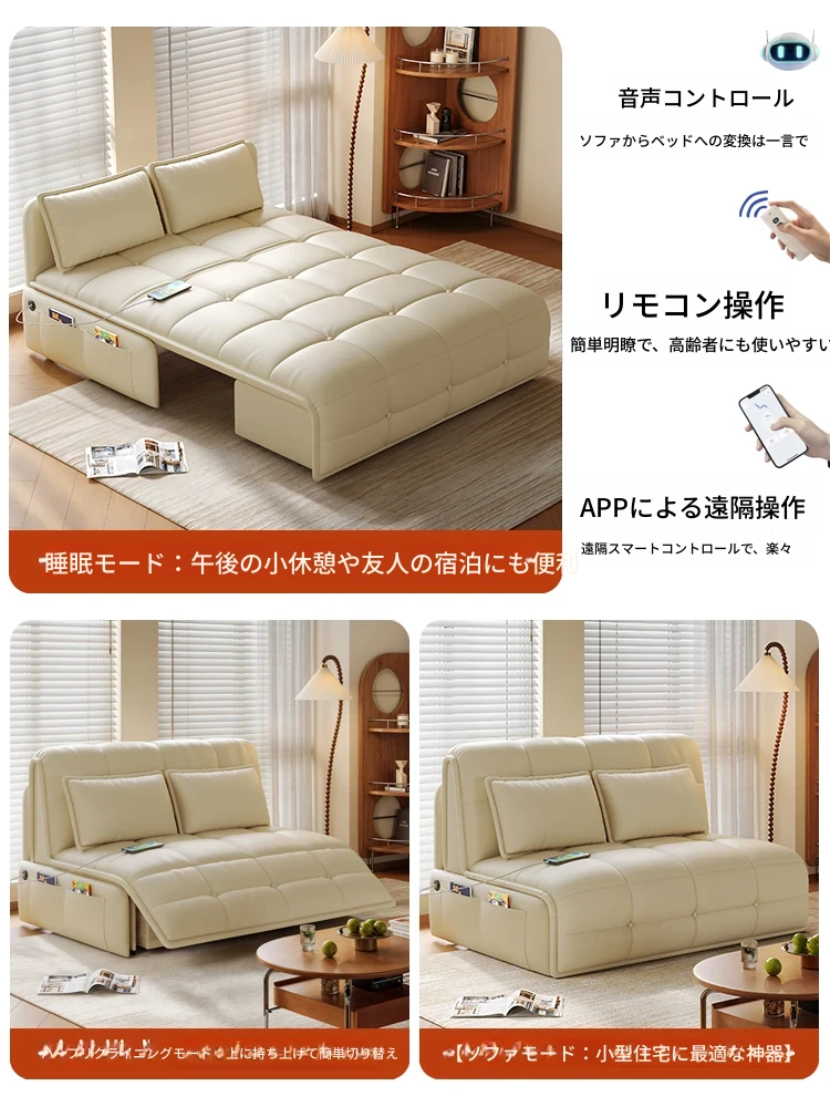 スマート電動ソファベッド|折りたたみ式多機能|リビング・寝室・書斎に最適|小型住宅向け|シングル・ダブル対応|快適な眠りとスタイリッシュなデザインを実現!