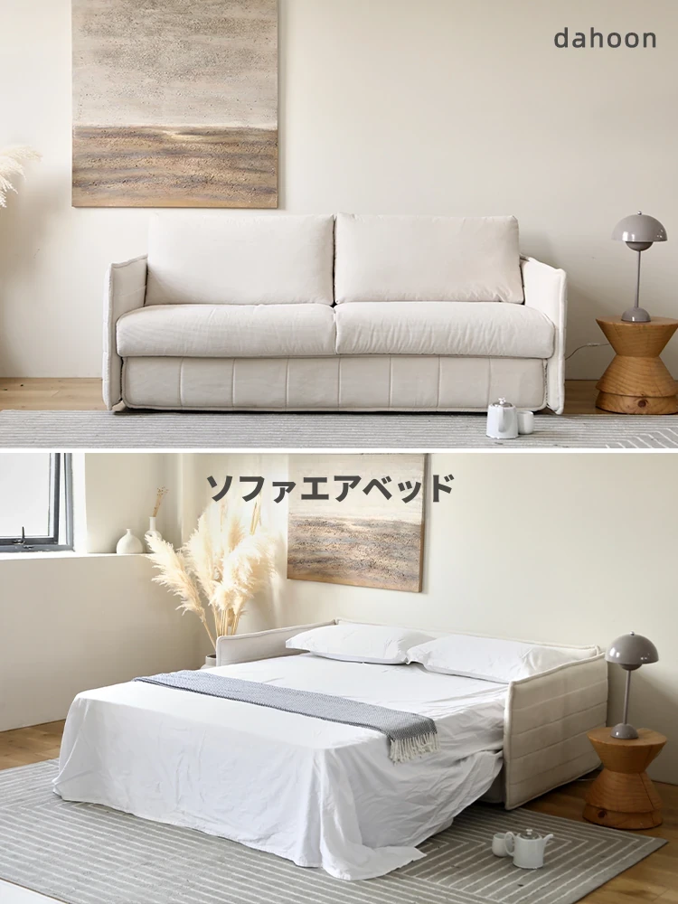 天然木材使用のクリーム風ソファベッド、エレファントイヤーデザイン!人気の折りたたみ式・多機能タイプ、小型スペースにもぴったり、伸縮可能で収納も充実。おしゃれな空間を演出します!
