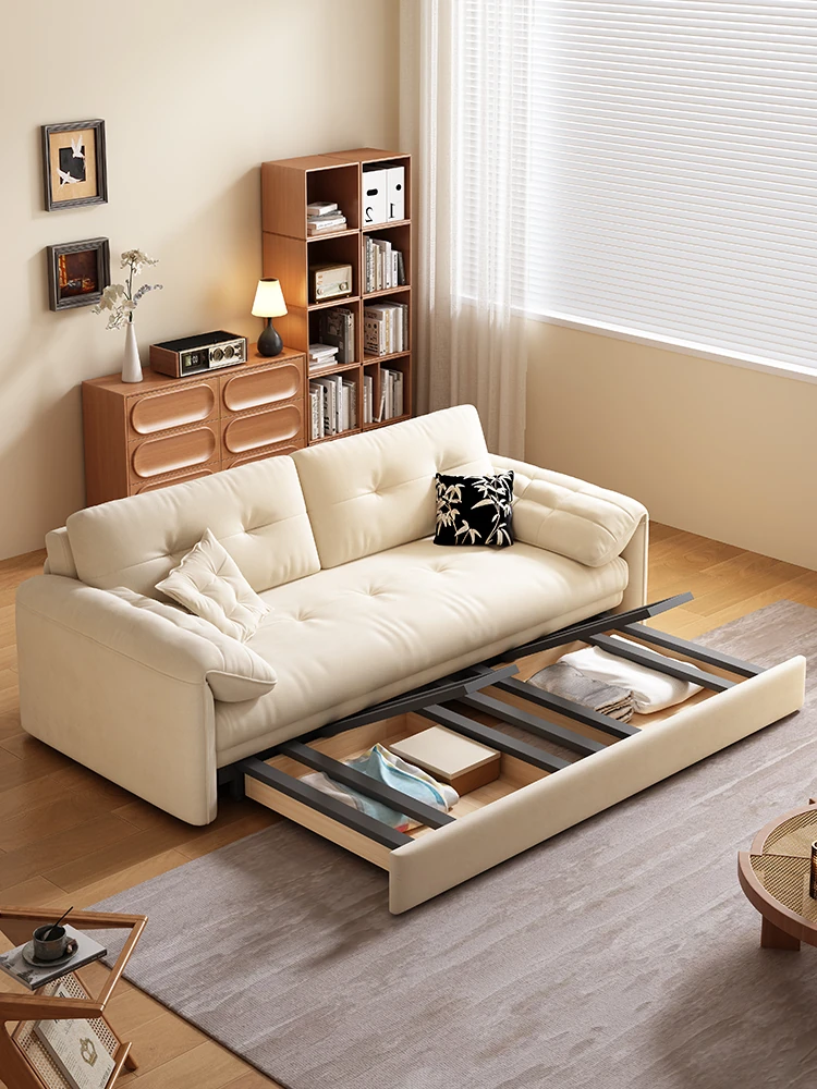 クリーム風折りたたみソファベッド|2WAYダブルサイズ|小型アパート向け|おしゃれなネット人気モデル|多機能リビング&書斎用|1.5m伸縮式ベッドでスペースを有効活用!