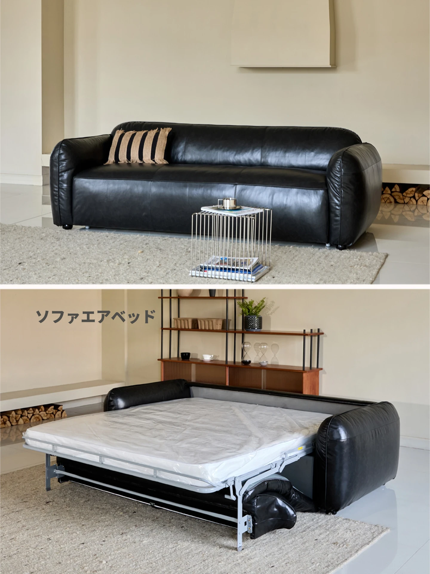 DAHOON 知古ソファベッド - バウハウス風のヴィンテージデザイン、上質なオイルワックス牛革使用、ふわふわのダウンクッションで快適な折り畳み2WAYソファベッド!あなたのリビングにスタイリッシュなアクセントを!