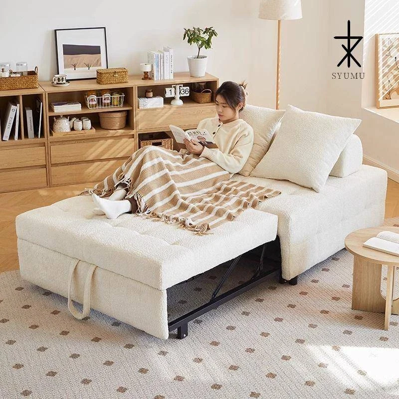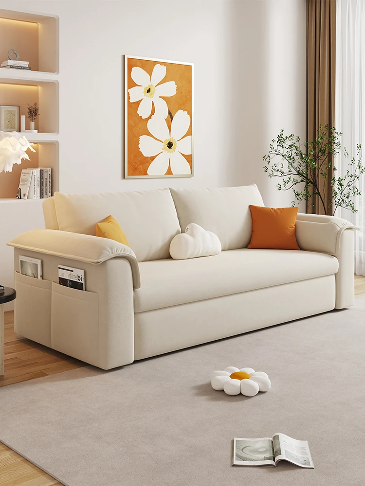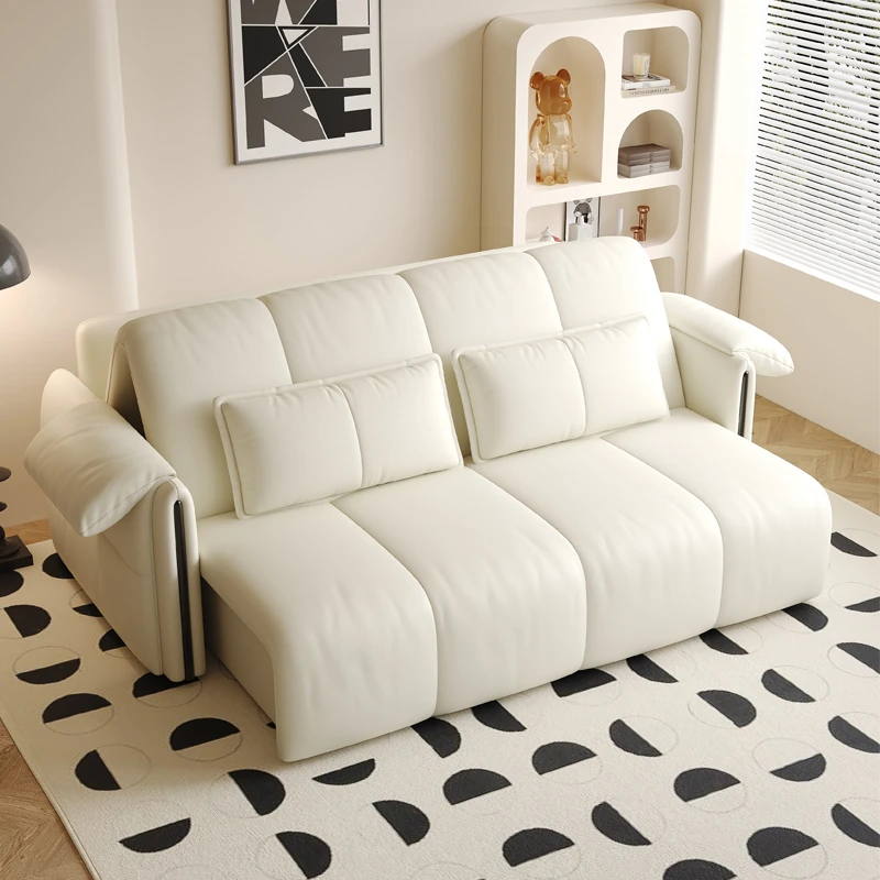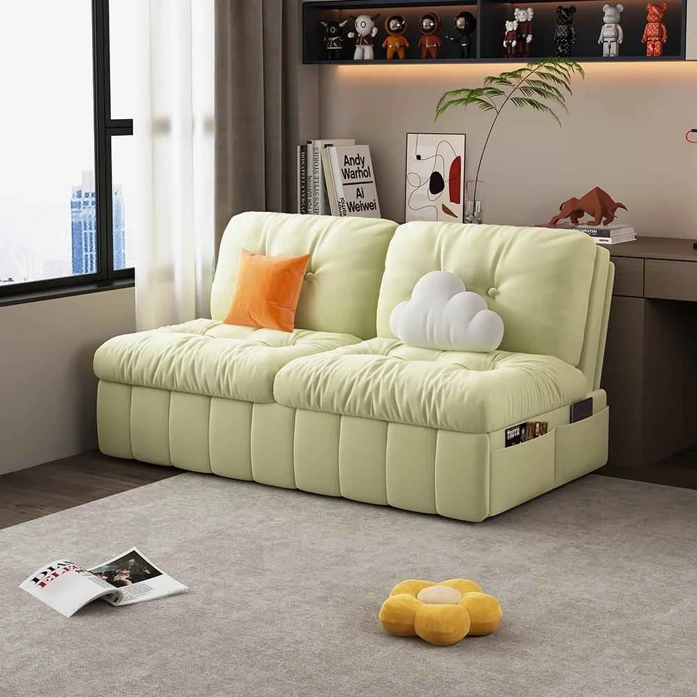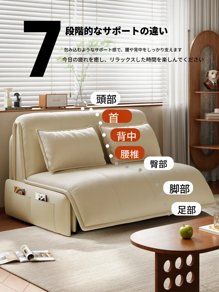クリーム風のスマート電動ソファベッド - 折りたたみ式多機能、伸縮自在!リビングや寝室に最適、猫の爪研ぎにも耐えるダブルソファ。快適な睡眠とリラックスを手に入れましょう!