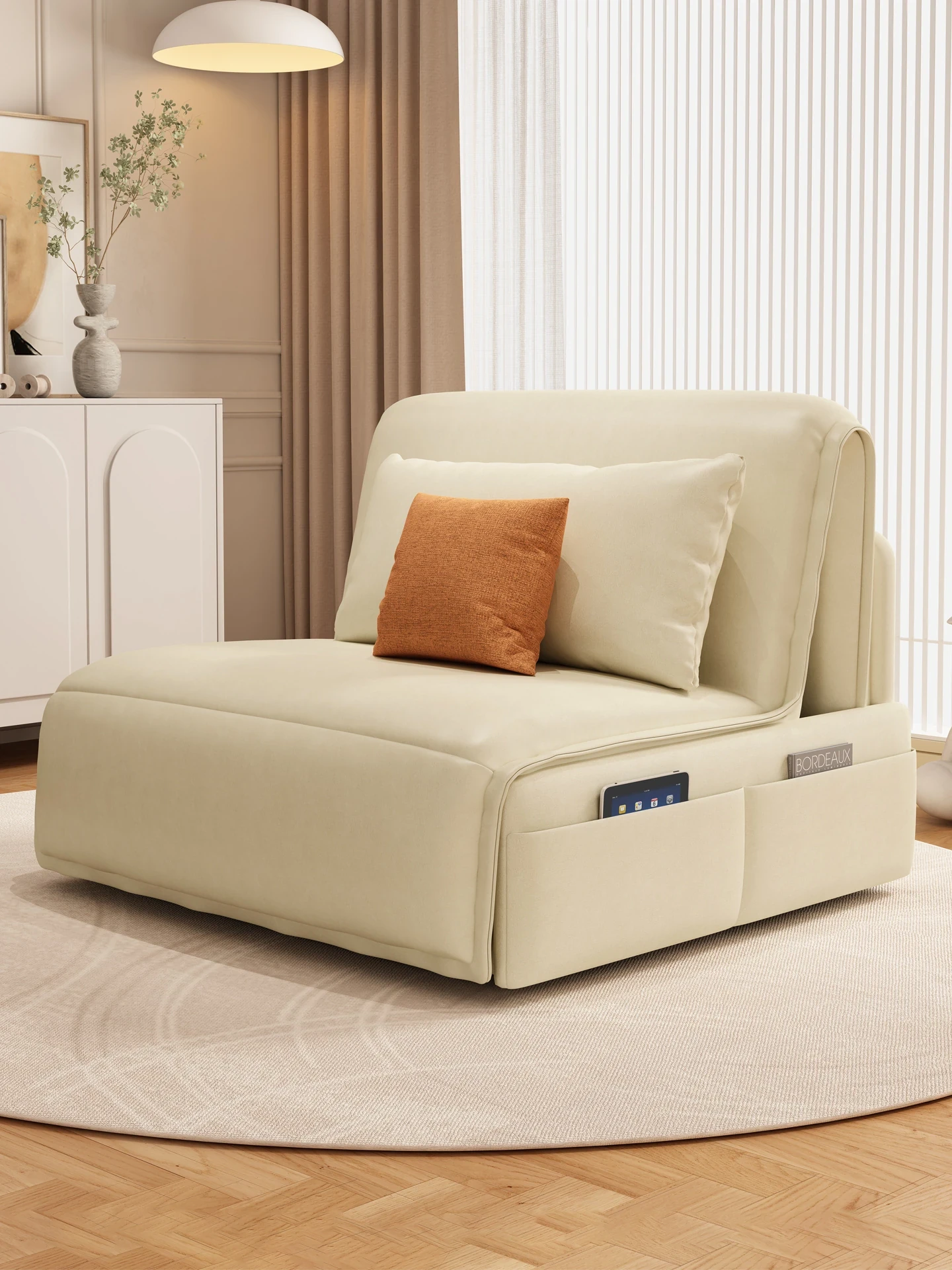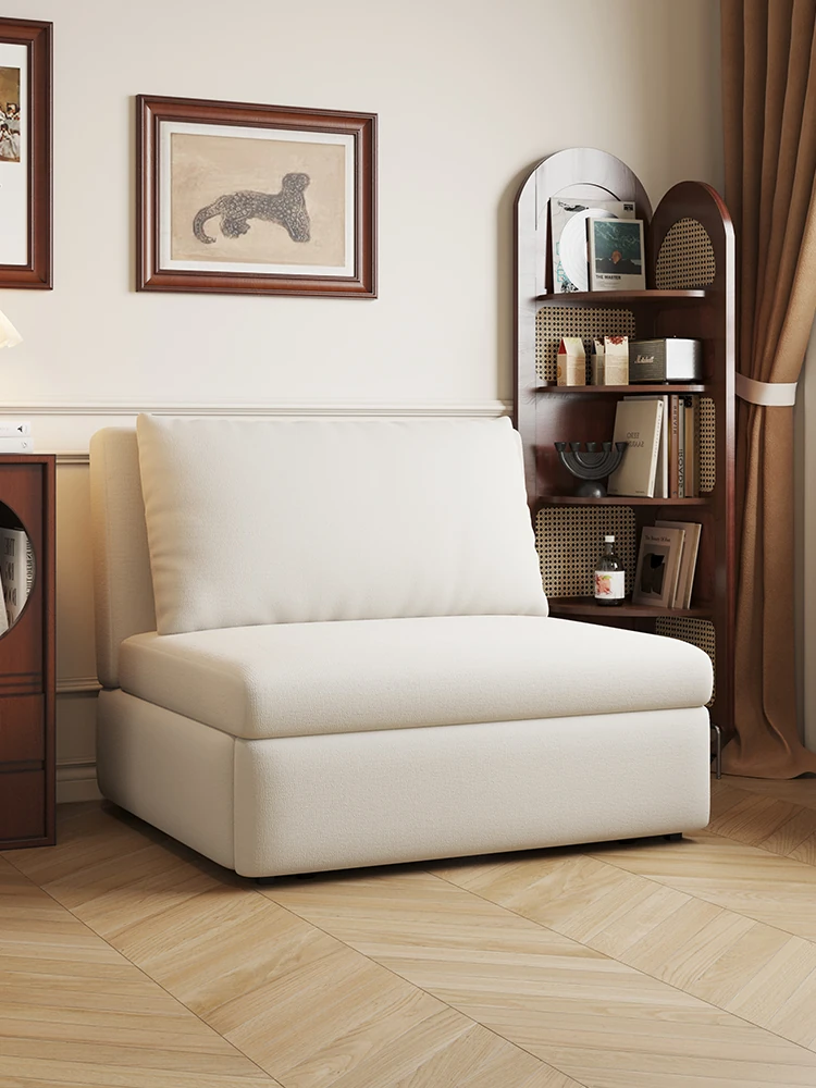 [香港送料無料] フランス風クリームカラーのソファベッド!マットなベルベット仕上げで多機能、プッシュ&プルのデザイン。アームレストなしの折りたたみタイプ、小さなお部屋にもぴったり!