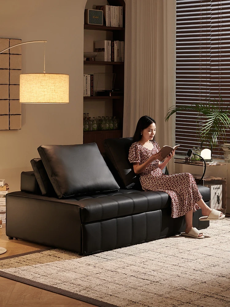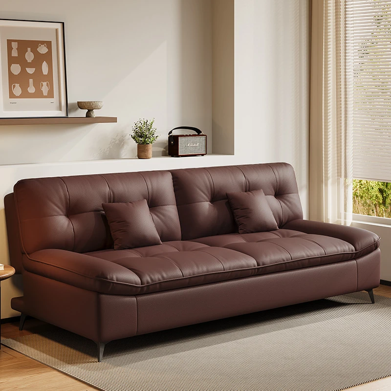 ローランス本革製ソファベッド 小型二人用 折りたたみ可能な多機能デザイン バルコニーやリビングに最適!収納式スリーピング機能付きでスペースを有効活用!