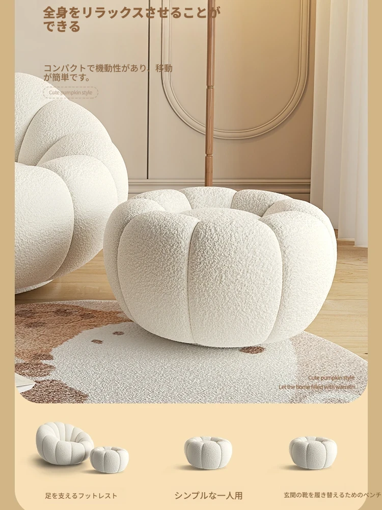 南瓜型ソファスツール|ホワイトラビットファー|シンプルでラグジュアリーなデザイン|リビングや寝室に最適な小さな円形スツール|一人用【快適な座り心地】でおしゃれな空間を演出!