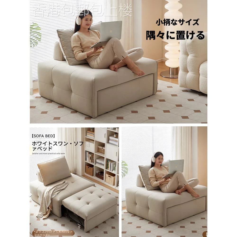 【香港送料無料】ふわふわパフソファベッド!多機能シングルソファ、折りたたみ可能なリクライニングチェアで、リビングにぴったりの快適な休息スペースを実現!