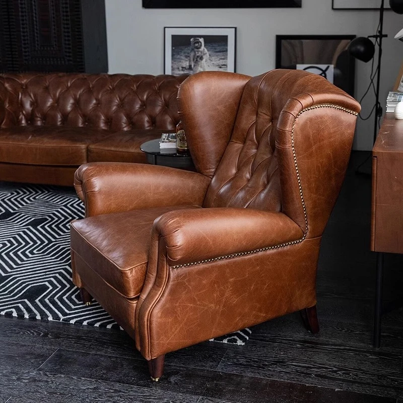 クラシック1919シガーチェア フレンチスタイルのトラチェア アンティーク風 本革製ゴッドファーザー椅子 ヴィンテージな中華風リビングソファチェアで、優雅な空間を演出!