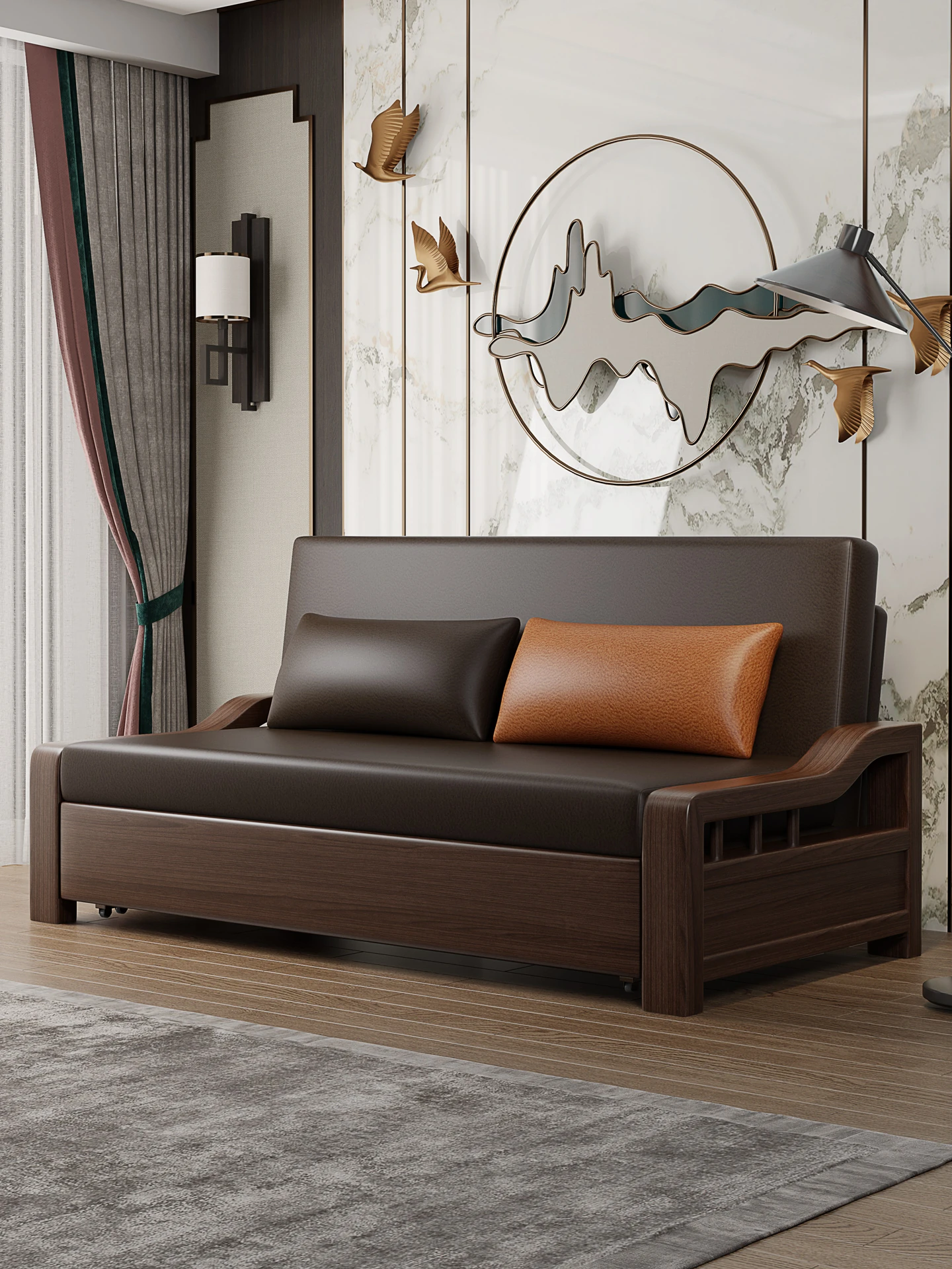 【香港製】全実木の引き出し式伸縮ベッド!多機能折りたたみソファベッド、狭い部屋にも最適。シンプルでスタイリッシュなデザインで、快適な睡眠空間を提供します。