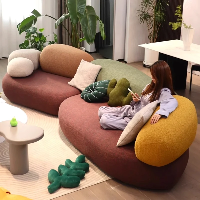 ユニークな小石デザインのファブリックソファ!美容院の受付エリアに最適なクリエイティブな異形岩石アーチソファ。お客様を魅了するスタイリッシュな空間を演出します。