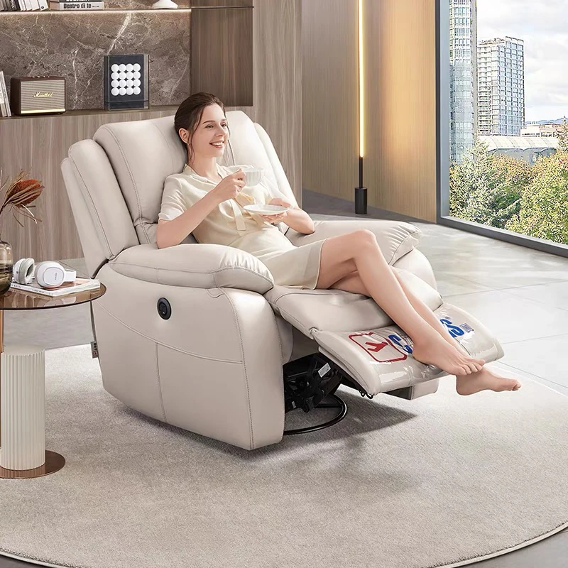 芝华仕モダンシンプル本革電動マルチファンクション一人掛けソファ - リラックスできる揺れる回転式、K135モデルで快適なリビング空間を実現!