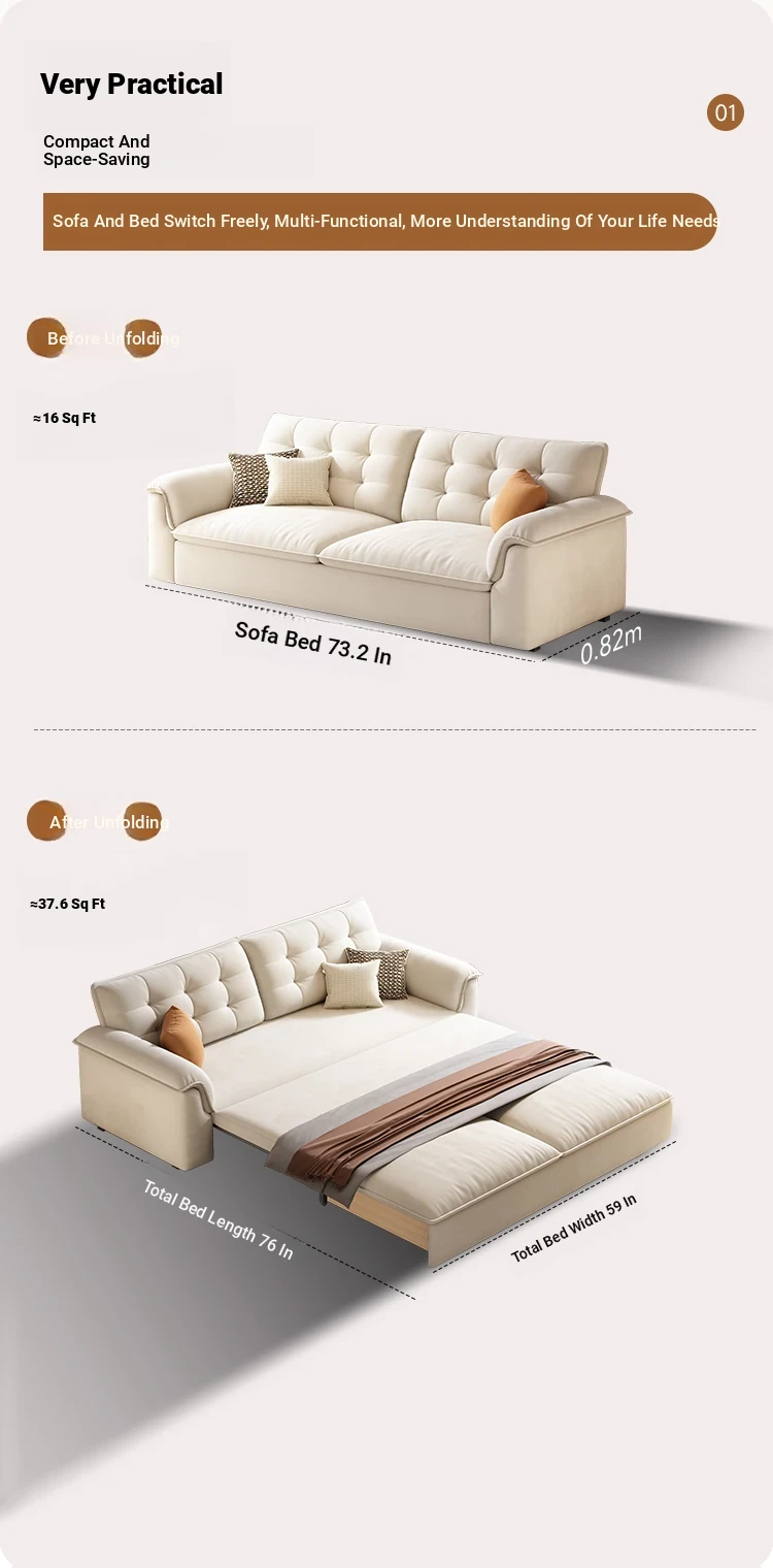 2025 Cream Cloud Folding Sofa Bed – Versatile Mini Couch for Small Apartments, Direct Delivery to Hong Kong! Perfect for Compact Living Spaces!
