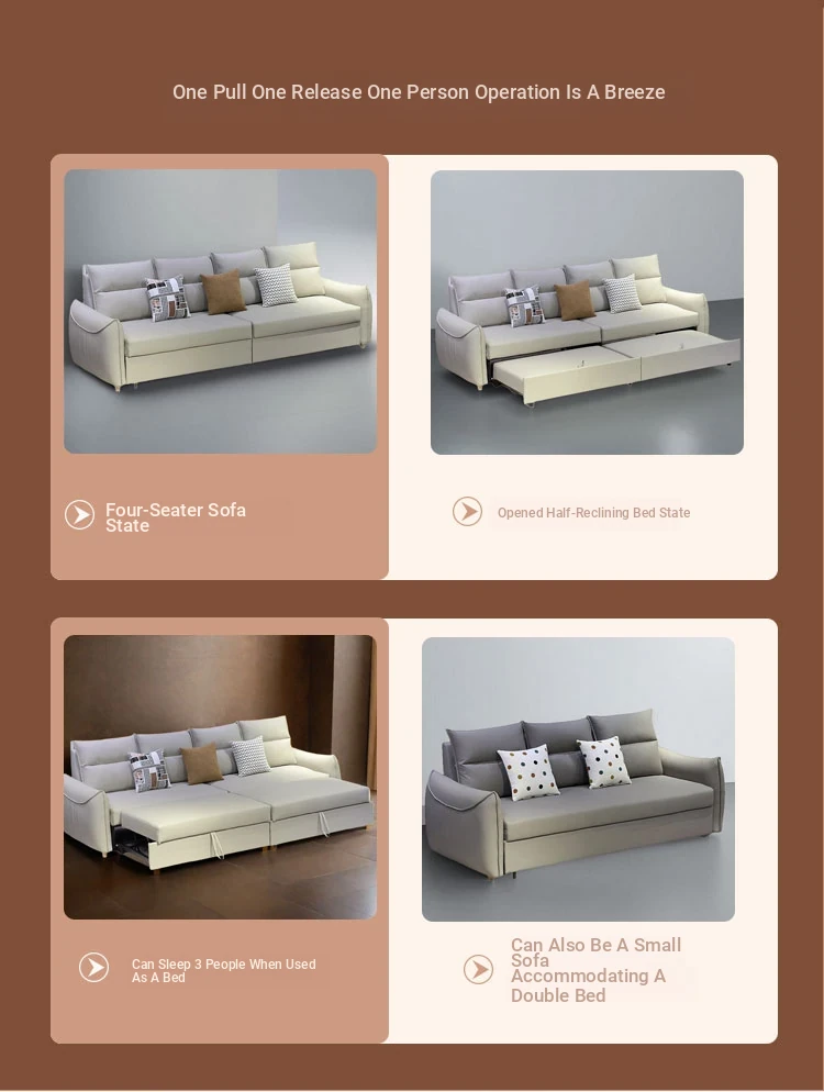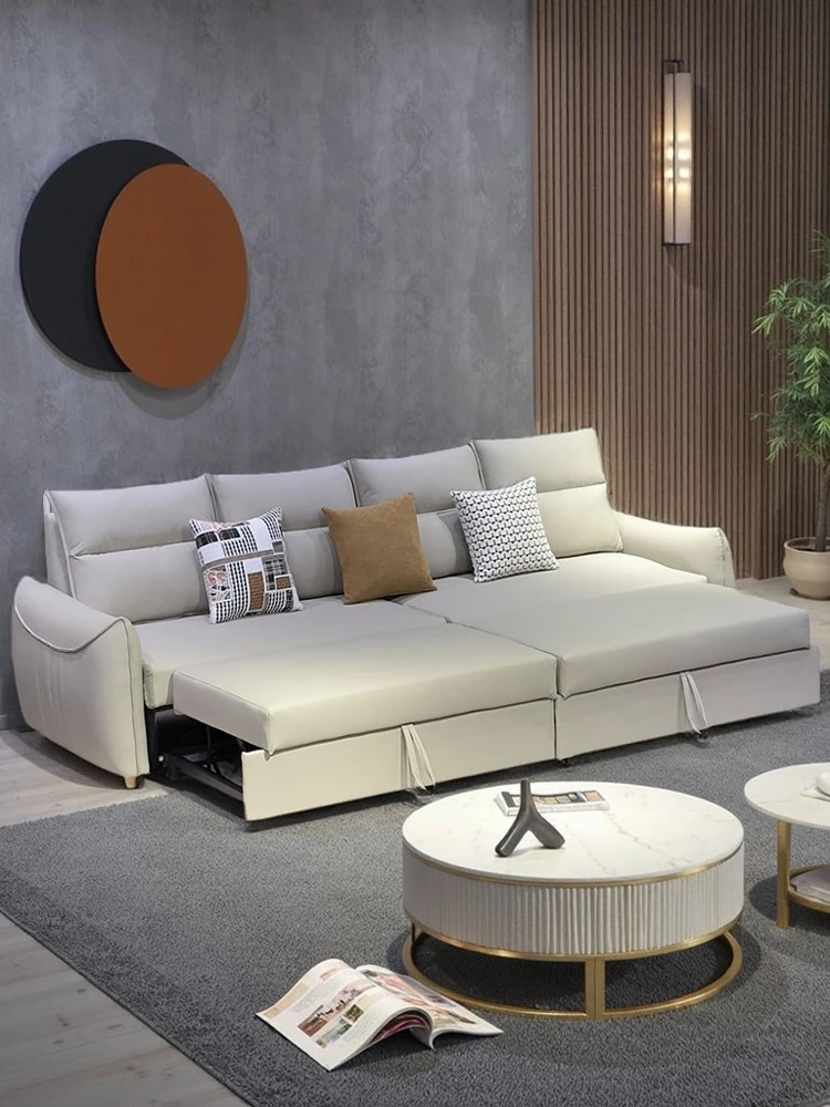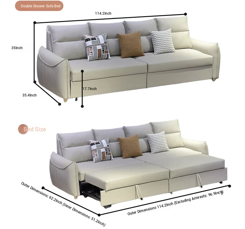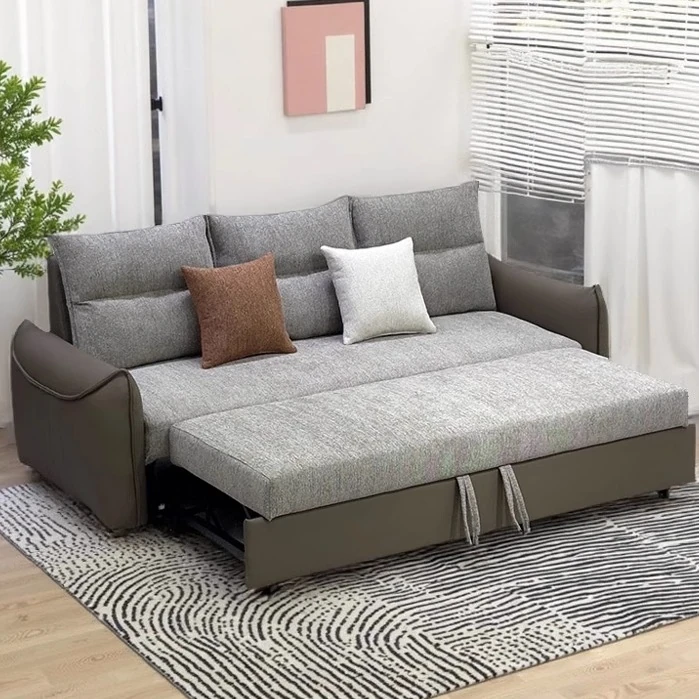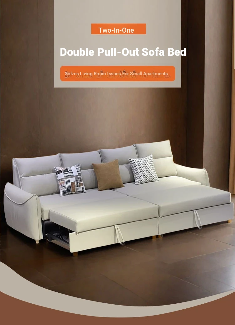 2025 Modern Minimalist Sofa Bed for Small Spaces - Foldable and Expandable Multi-Functional Fabric Couch with Dual Drawers for Living Room Use