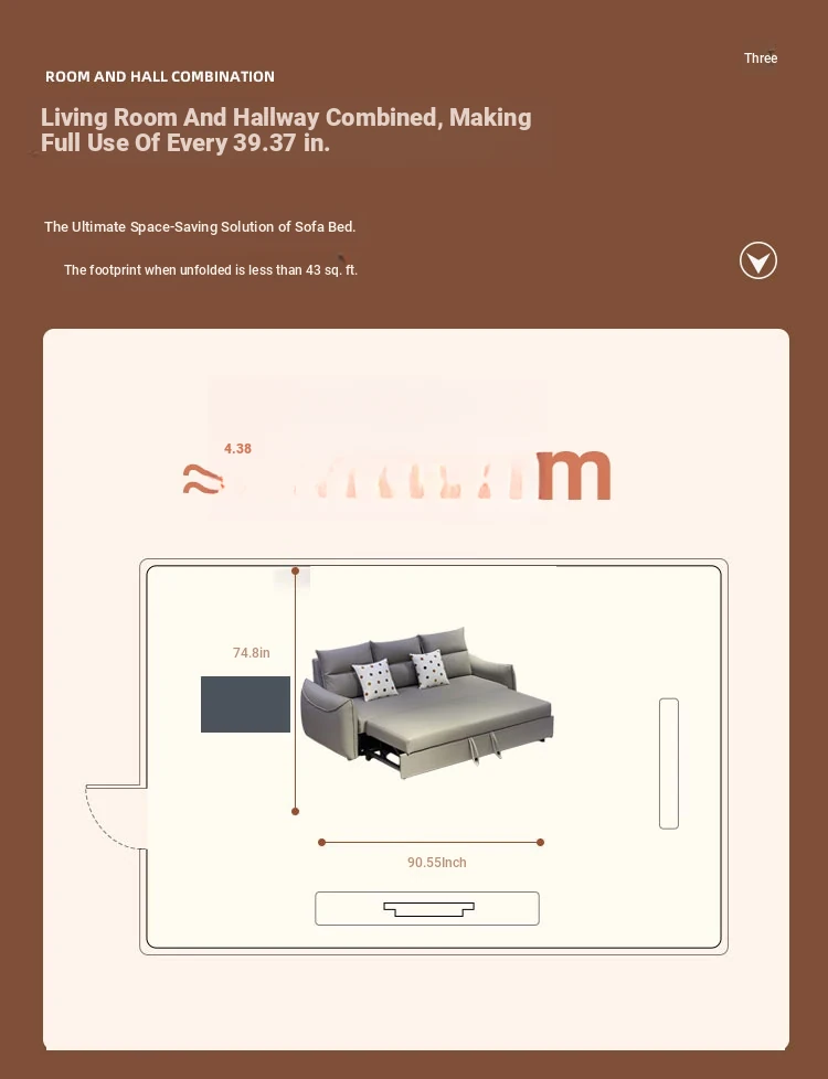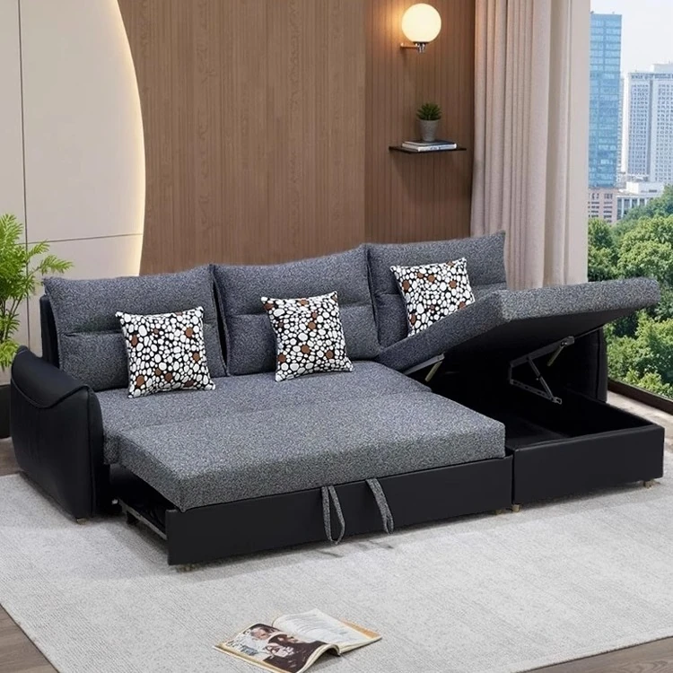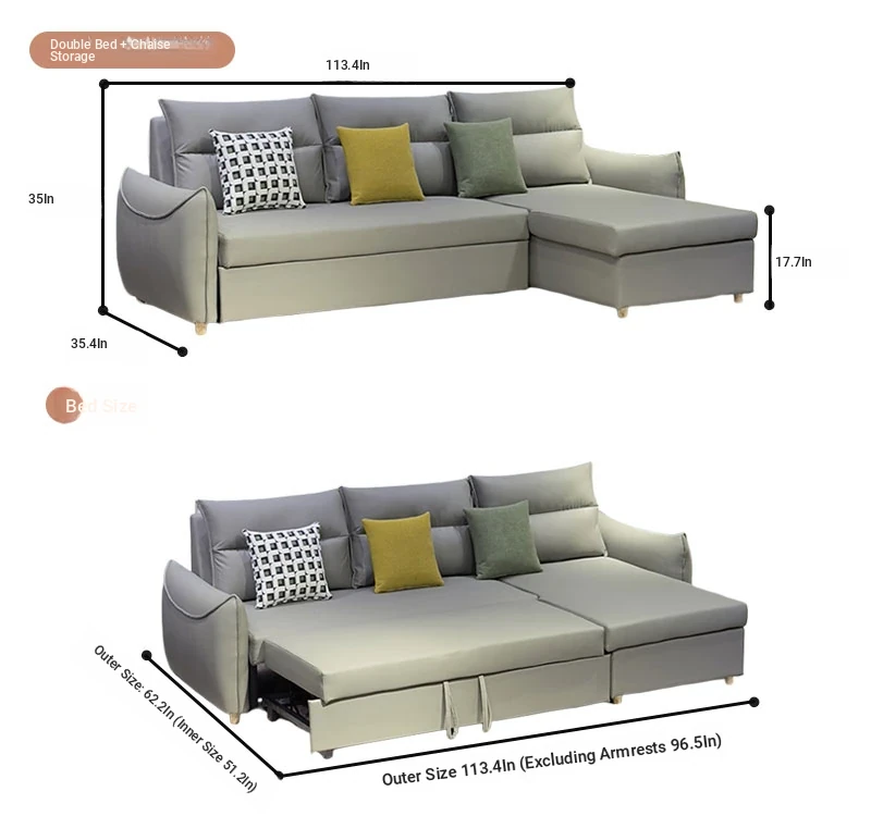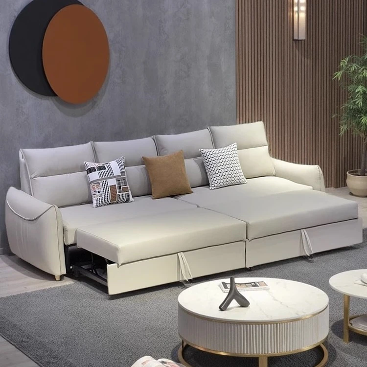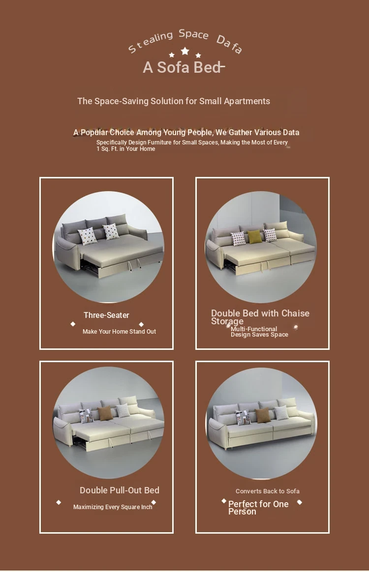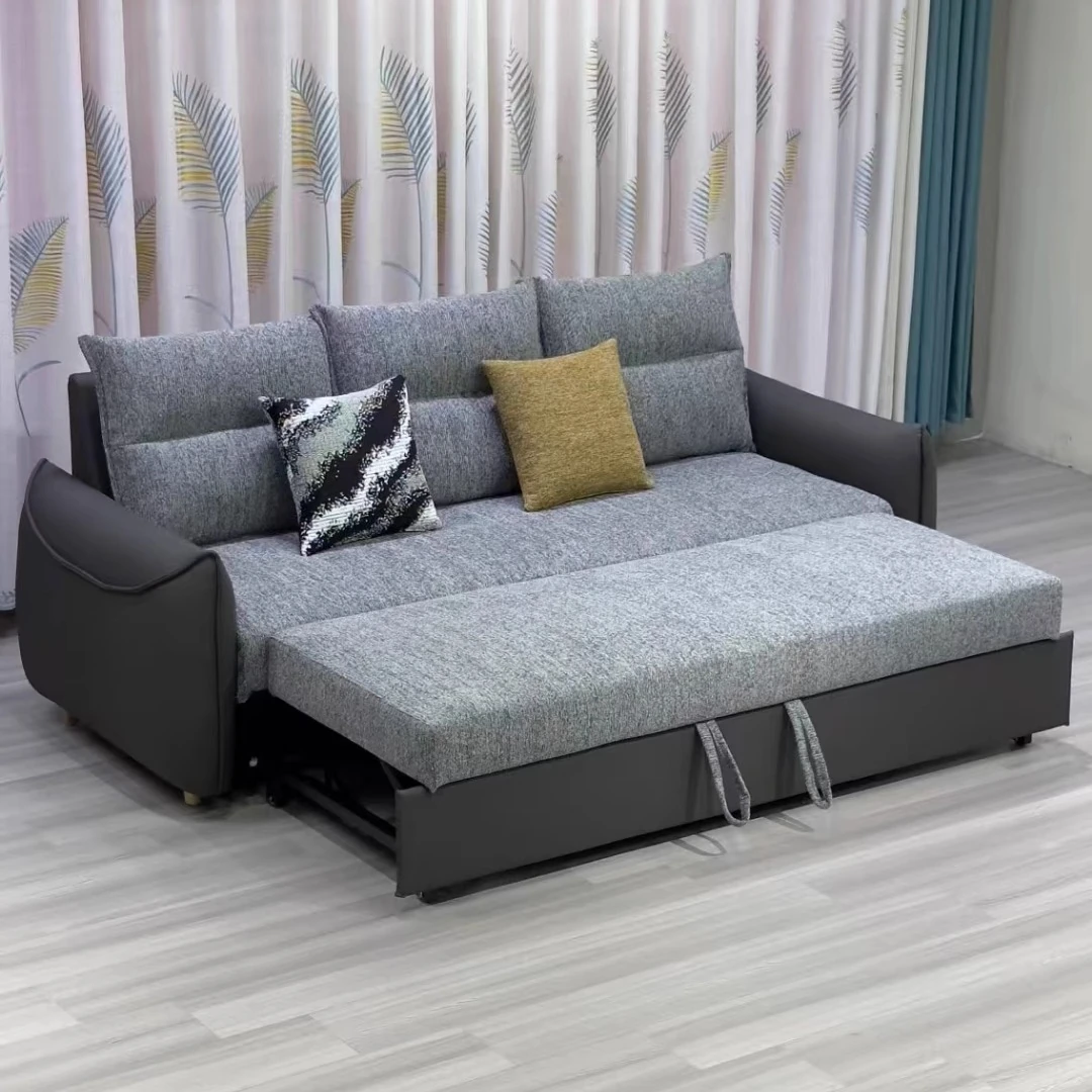 2025 Modern Minimalist Sofa Bed for Small Spaces - Foldable and Expandable Multi-Functional Fabric Couch with Dual Drawers for Living Room Use
