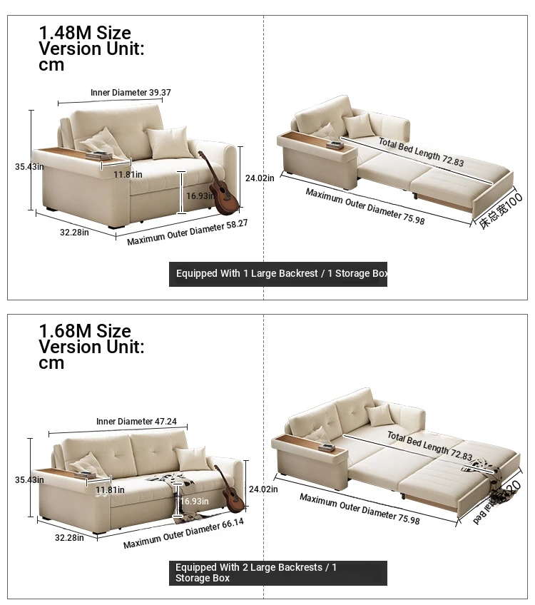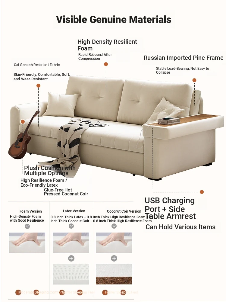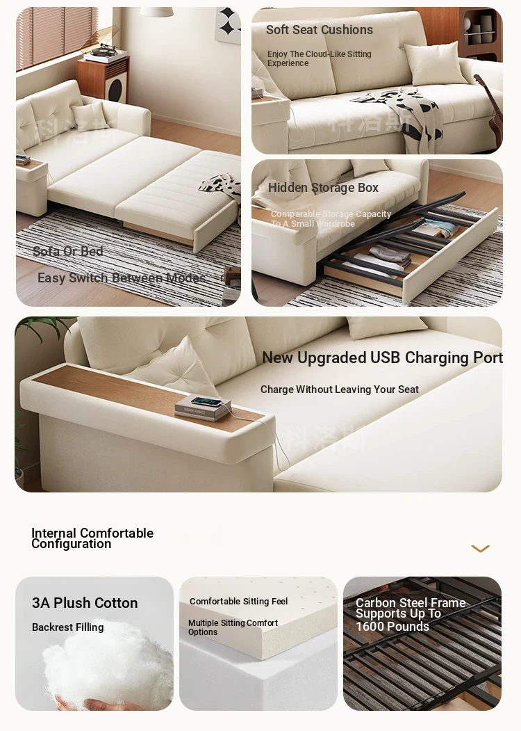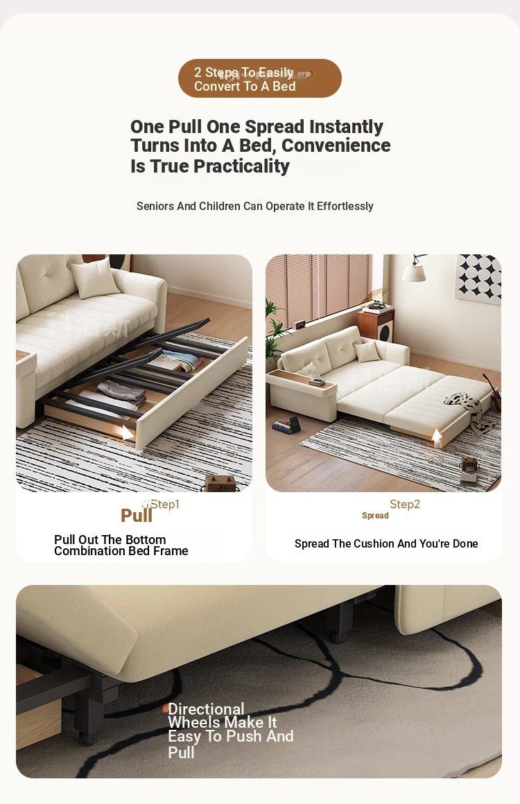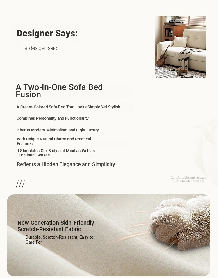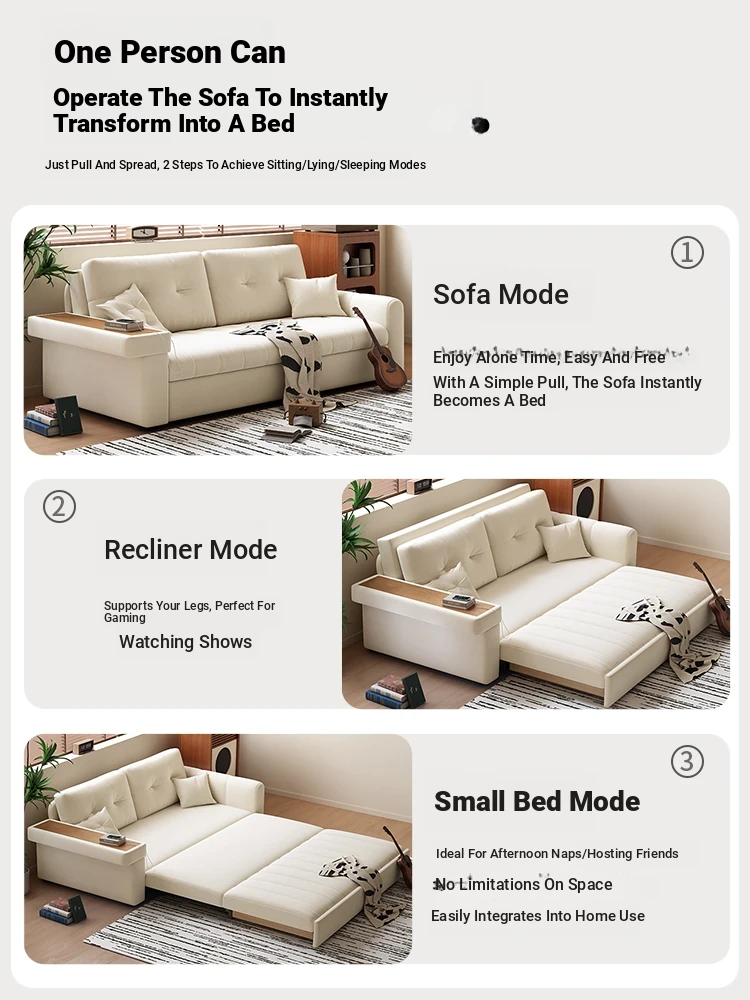 2025 New Multifunctional Convertible Sofa Bed - Creamy Fabric, Modern Minimalist Design, Perfect for Living Rooms