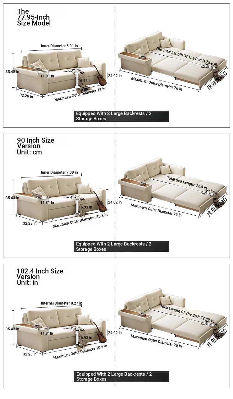 Including handrails 89.76 in [sponge storage | Solid wood edge handrails + USB]]