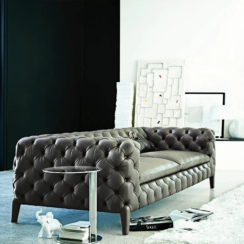 Arketipo Italian Luxury Leather Sofa - Modern Pull-Down Design for Small Living Rooms, Crafted from Top-Grain Leather