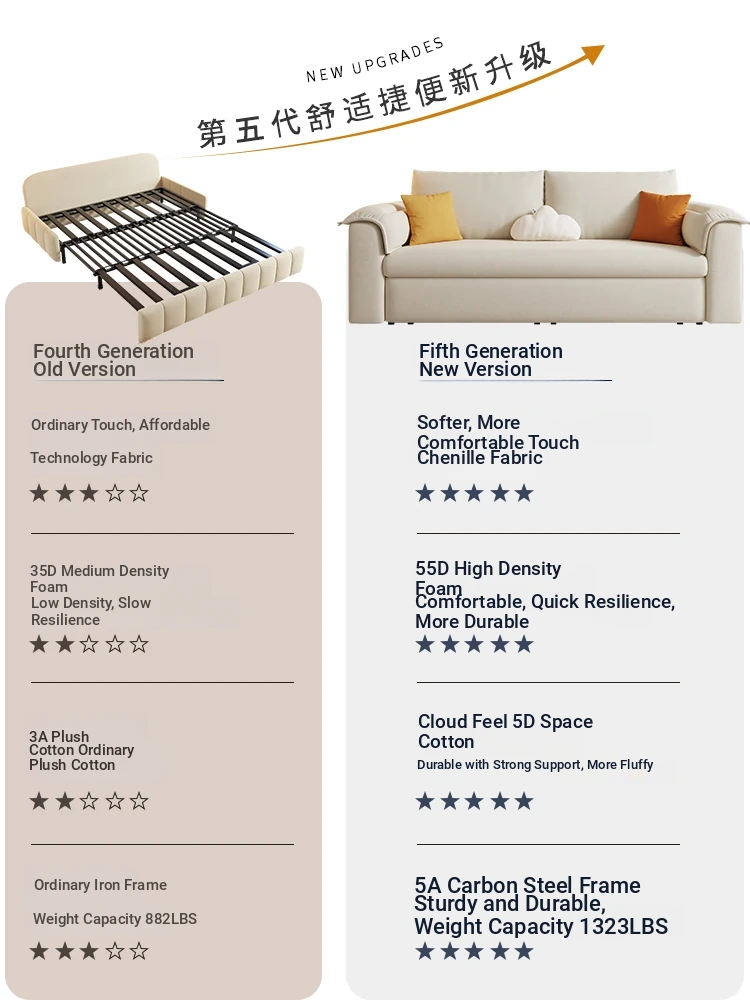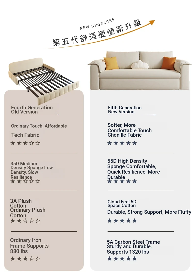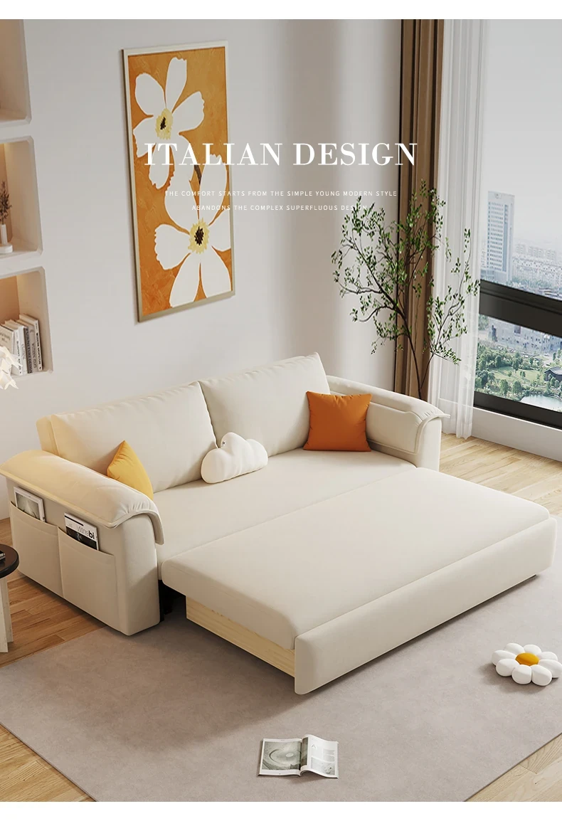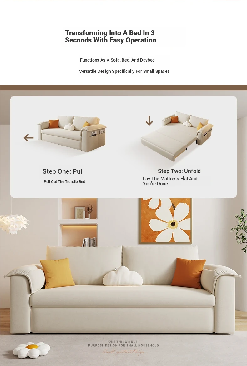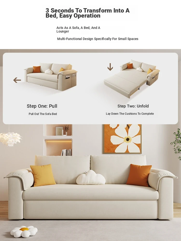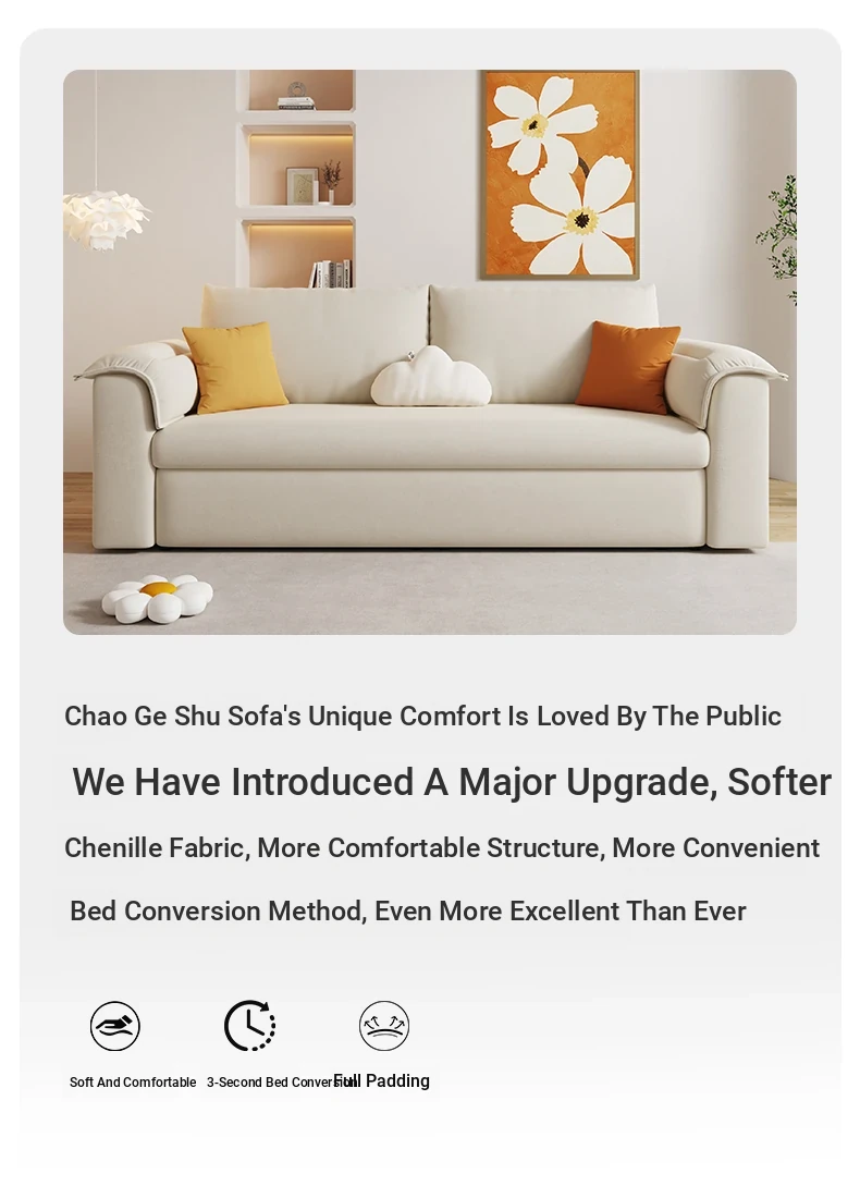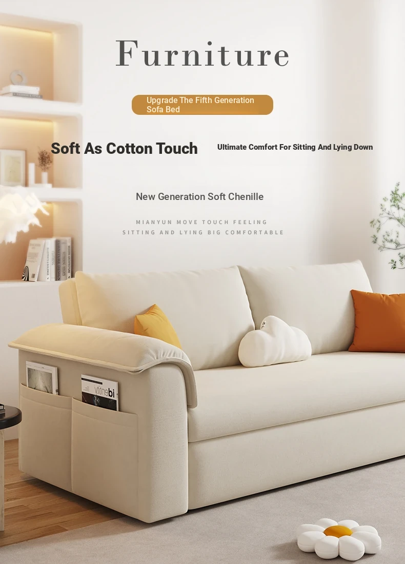 Chic Chenille Sofa Bed - Versatile Folding and Expanding Bed for Small Spaces, Perfect for Guest Rooms and Living Rooms, Trendy Double Bed for Overnight Stays