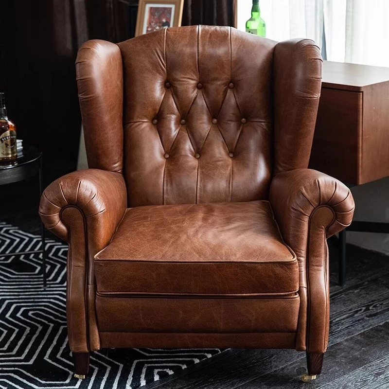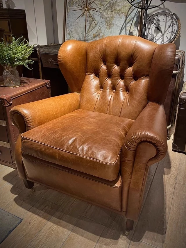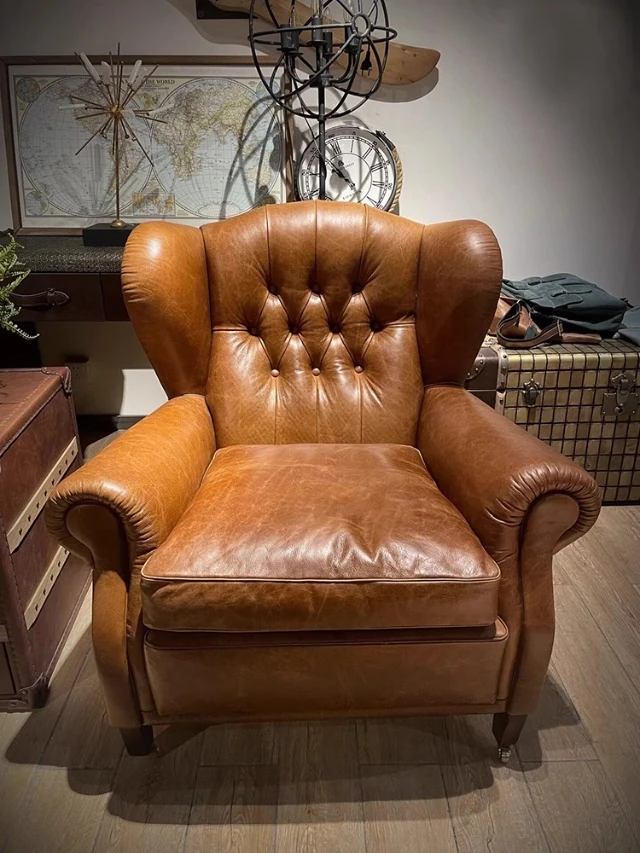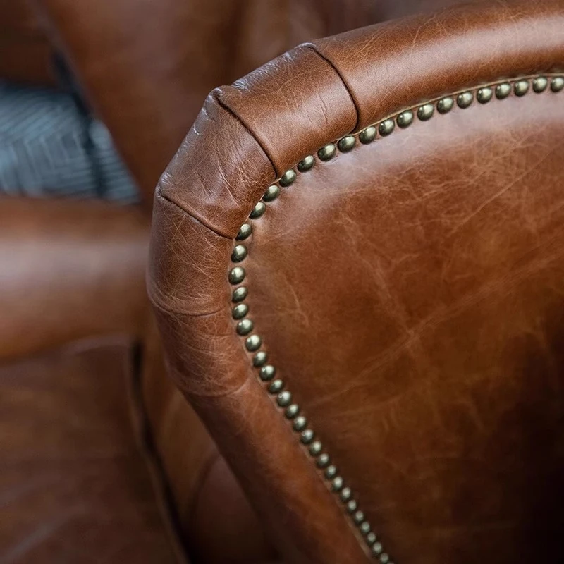 Classic 1919 Cigar Chair - Vintage French Tiger Chair with Distressed Genuine Leather - Retro Godfather Style Armchair for a Charming Living Room