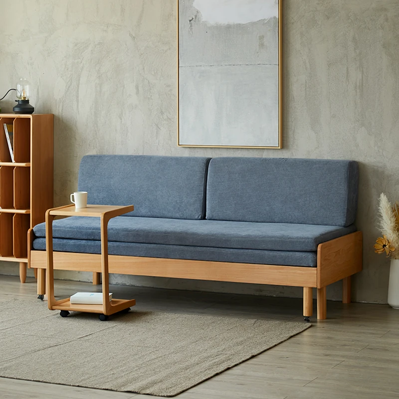Compact Expandable Sofa Bed for Small Spaces – Versatile Solid Wood Folding Design for Living Rooms, Perfect for Couples or Singles, Easy to Convert Between Sitting and Sleeping, Durable Iron Sliding Frame.