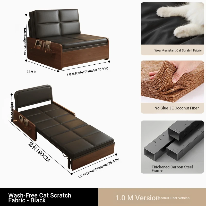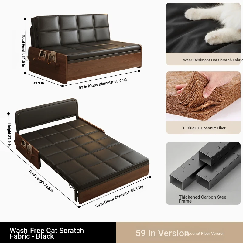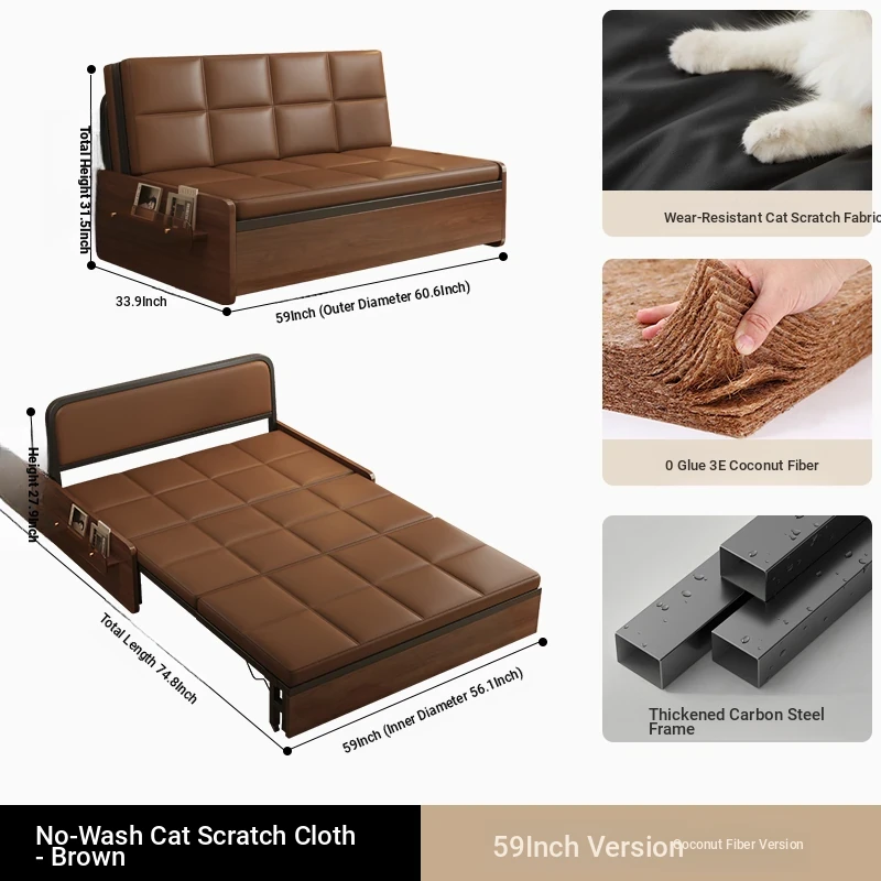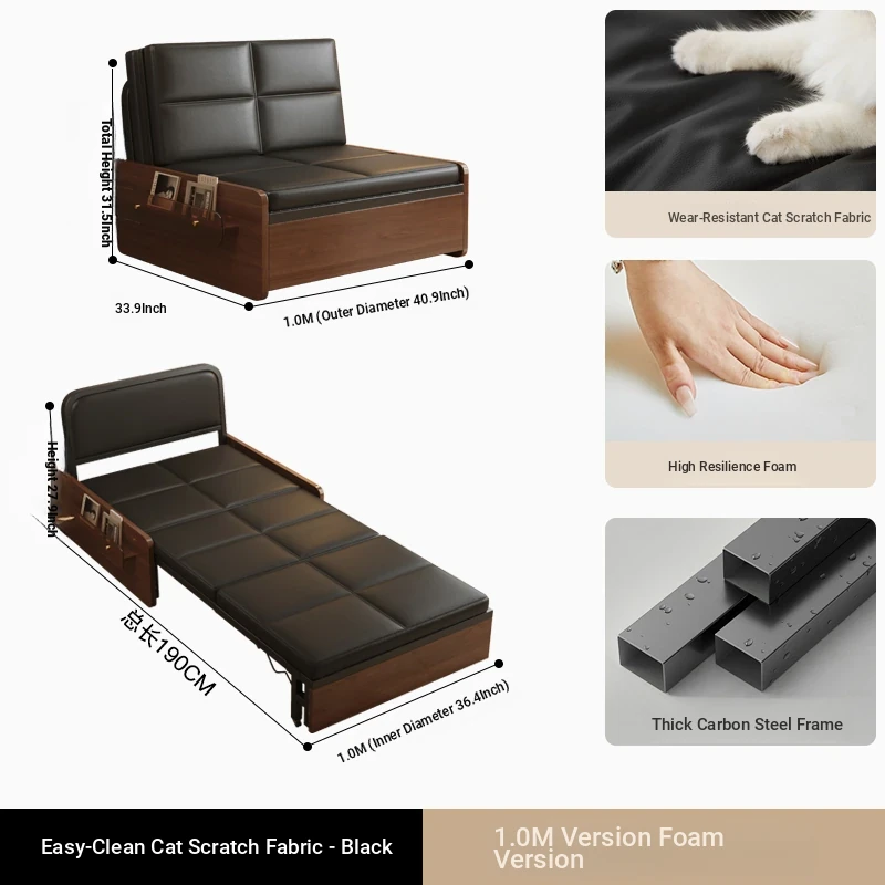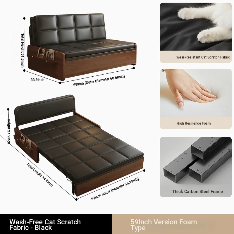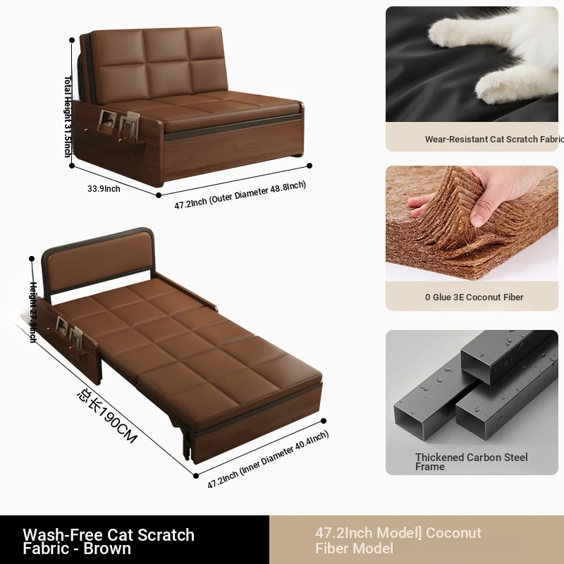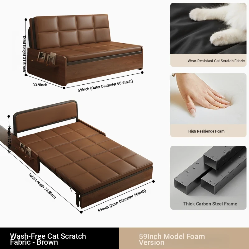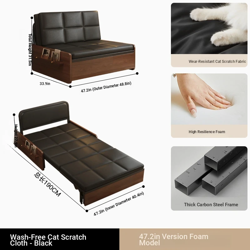 Compact Folding Sofa Bed - Versatile Mid-Century Modern Design for Home Use, Ideal for Living Room, Double and Single Size, Multi-functional Pull-Out Bed