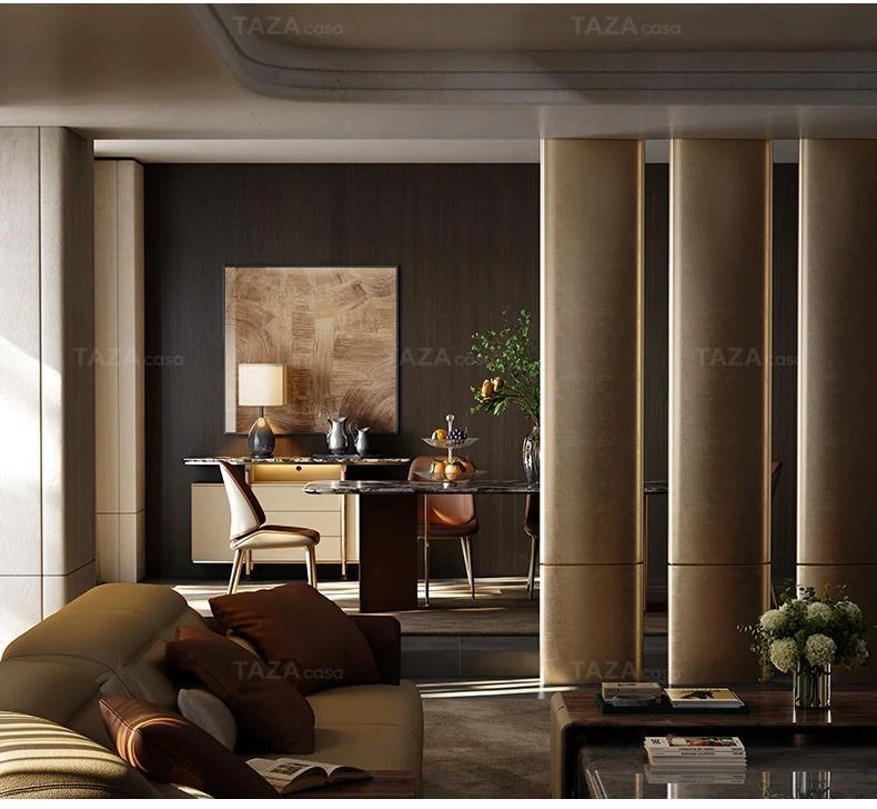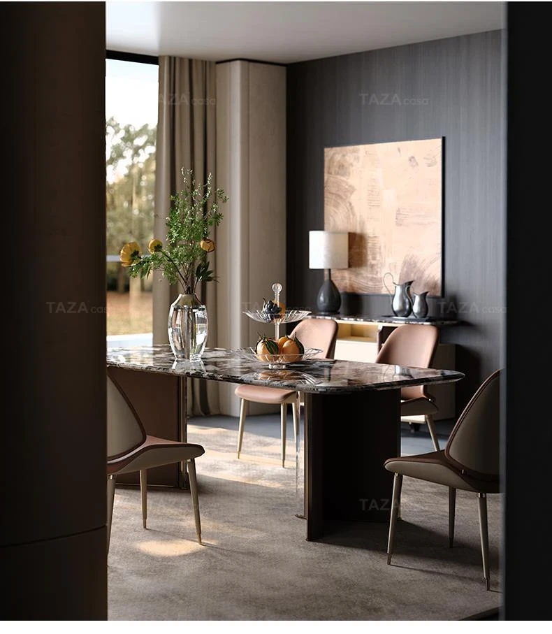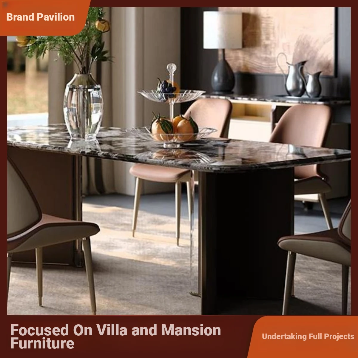 Complete Soft Decoration Solution: Modern Marble Long Dining Table for Villas and Luxury Homes - Elegant Italian Dining Room Collection