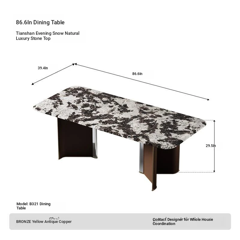 86.61in Long Dining Table [Tianshan Muxue Luxury Stone Surface]