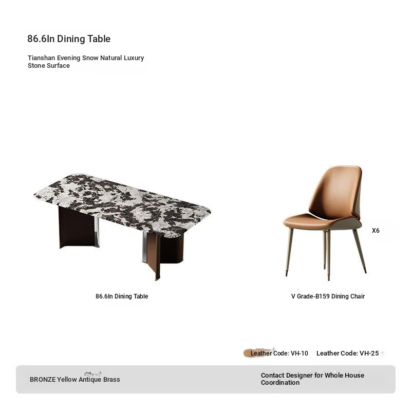 86.61in Long Dining Table [Tianshan Muxue Luxury Stone Surface] + B159 Dining Chair * 6[V Class]