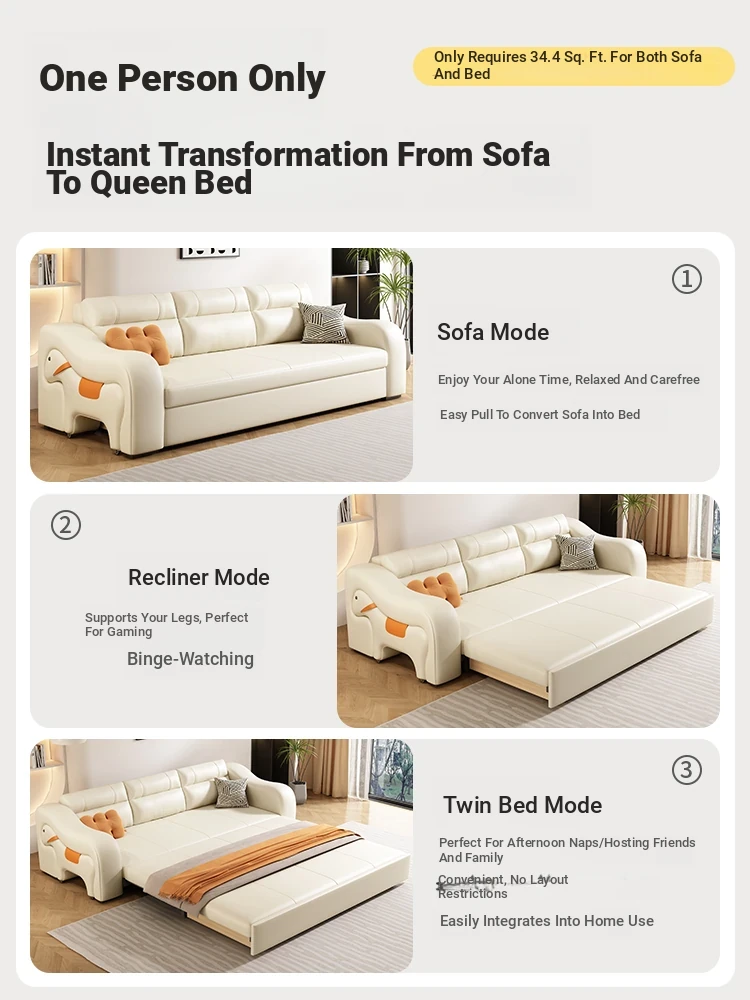 Creamy Wind Small Apartment Sofa Bed - 2025 New Model, Convertible and Space-Saving Design for Dual Use as a Stylish Sofa and Comfortable Bed for Two - Perfect for Modern Living Spaces!