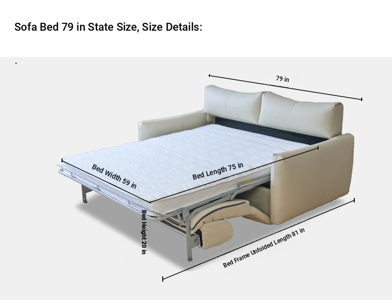 DAHOON Bumia Sofa Bed - Italian Luxury Style, High-Back Foldable Leather Sofa Bed for Sitting and Sleeping, Perfect for Modern Living Spaces
