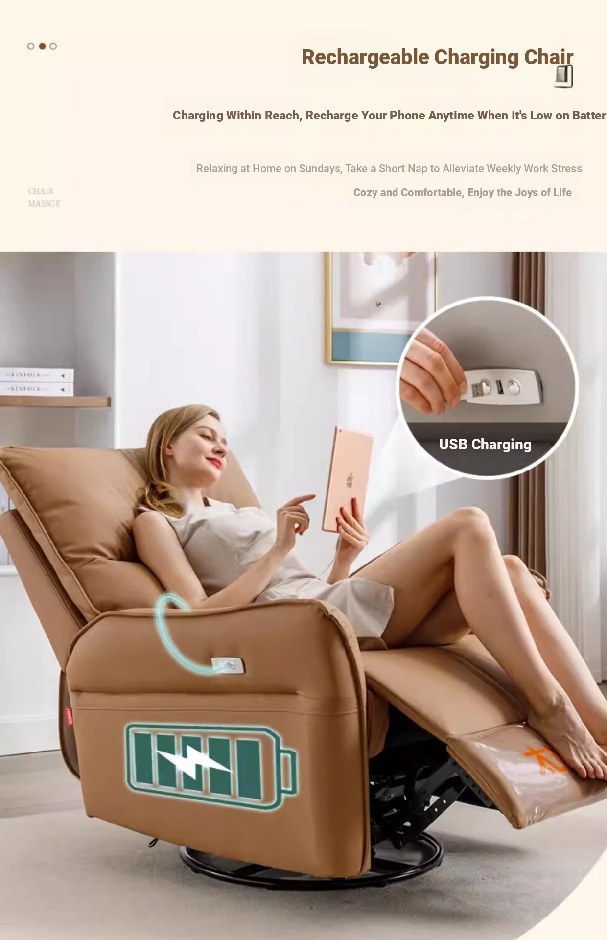 Electric sitting and lying + manual rotation + USB charging