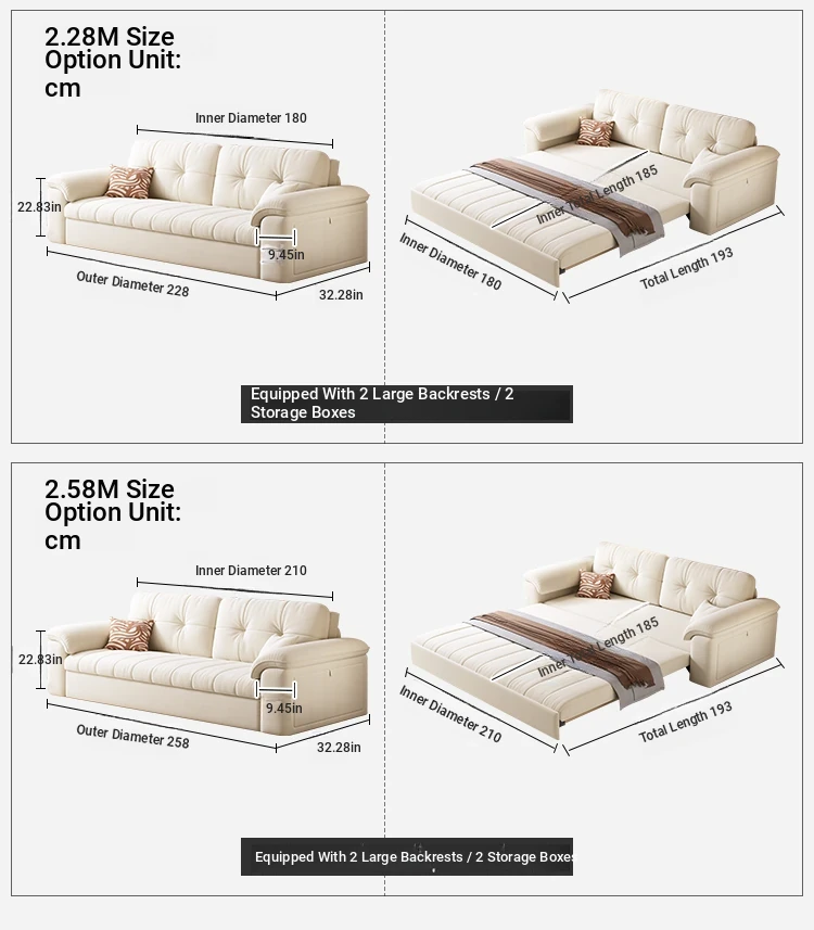 Including handrails 89.76 ins-high elastic sponge-with storage
