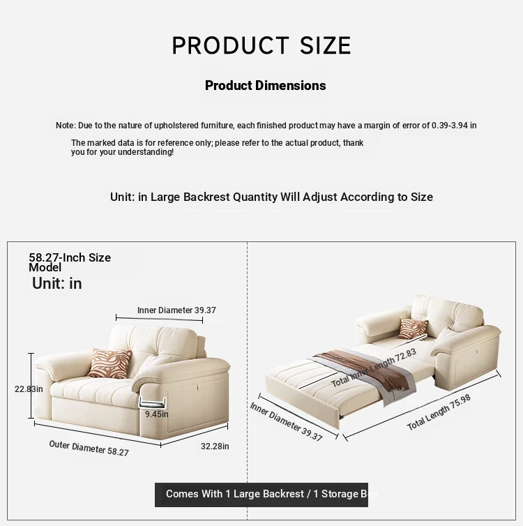 Including handrails 58.27 ins-high elastic sponge-with storage