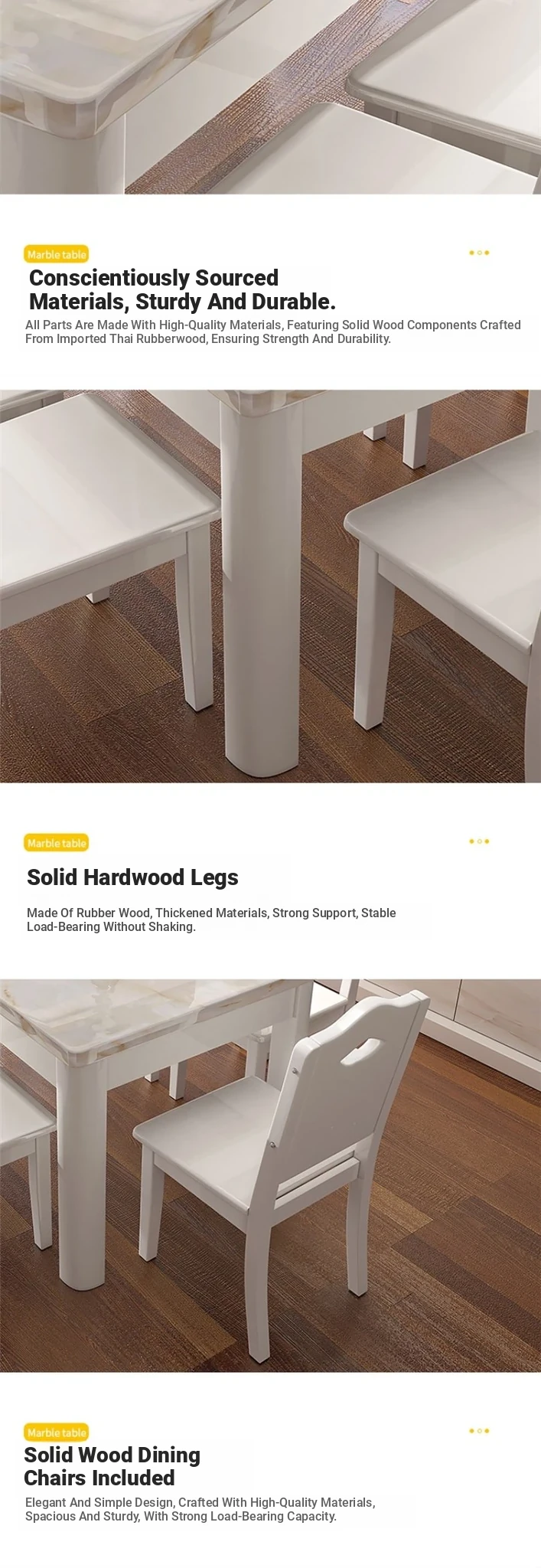 Elegant Marble-Patterned Square Dining Table for Small Spaces - Cozy Solid Wood Design, Perfect for Home Dining