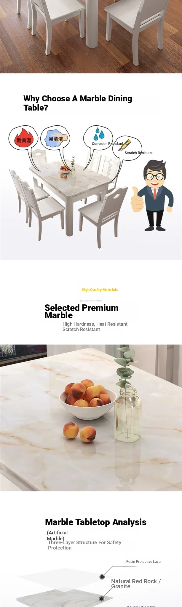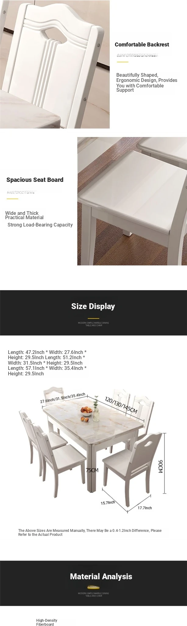 47.24 in 6 Chair (Marble) Package Installation Western Dining Table 806