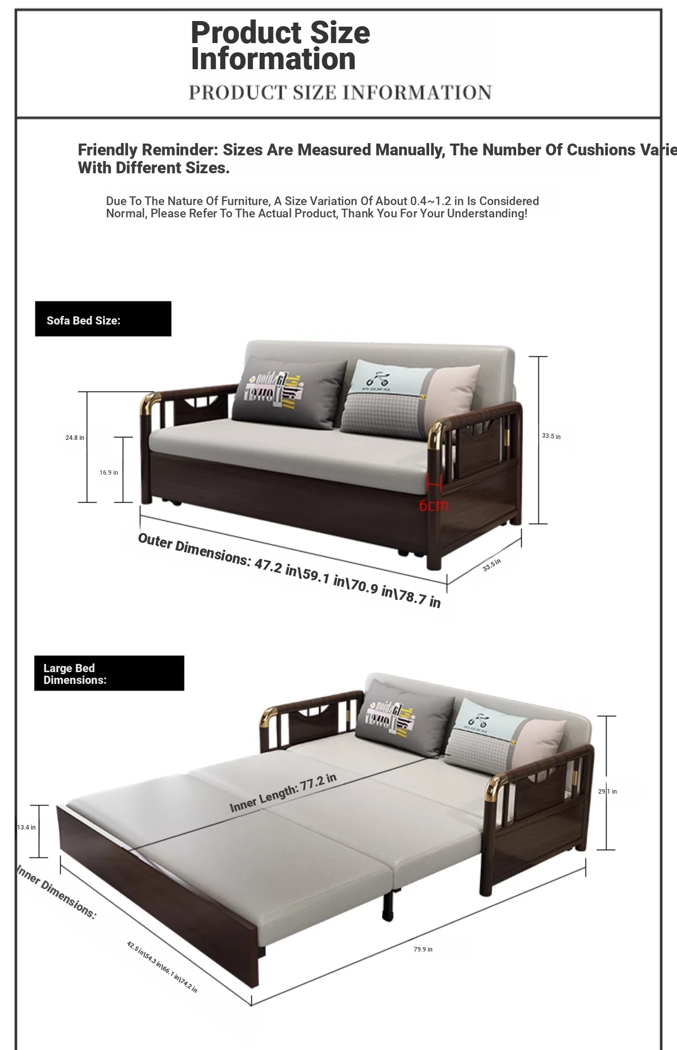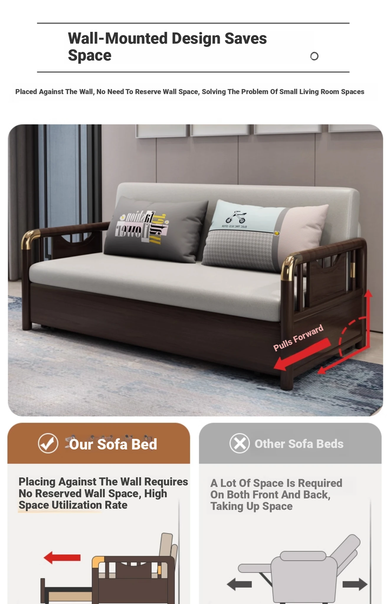 Foldable Sofa Bed for Living Room - Versatile & Stylish Single Bed for Small Spaces, Trendy Design with Solid Wood Construction, Ideal for Home Use and Multi-functional Purpose