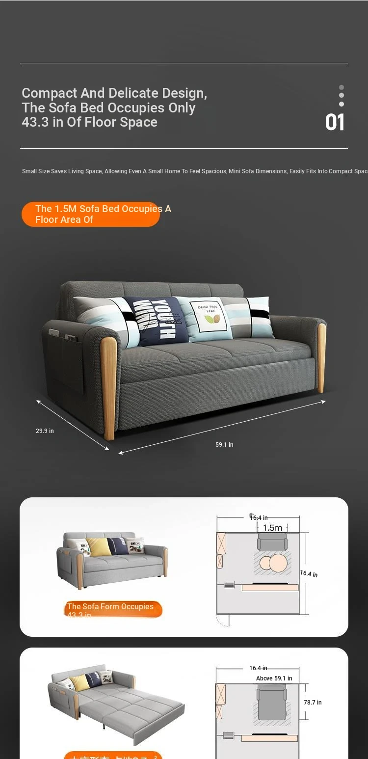 "Free Delivery in Hong Kong: FIMASH Folding Sofa Bed with Advanced Fabric - Multi-functional Small Sofa Bed for Your Living Room"
