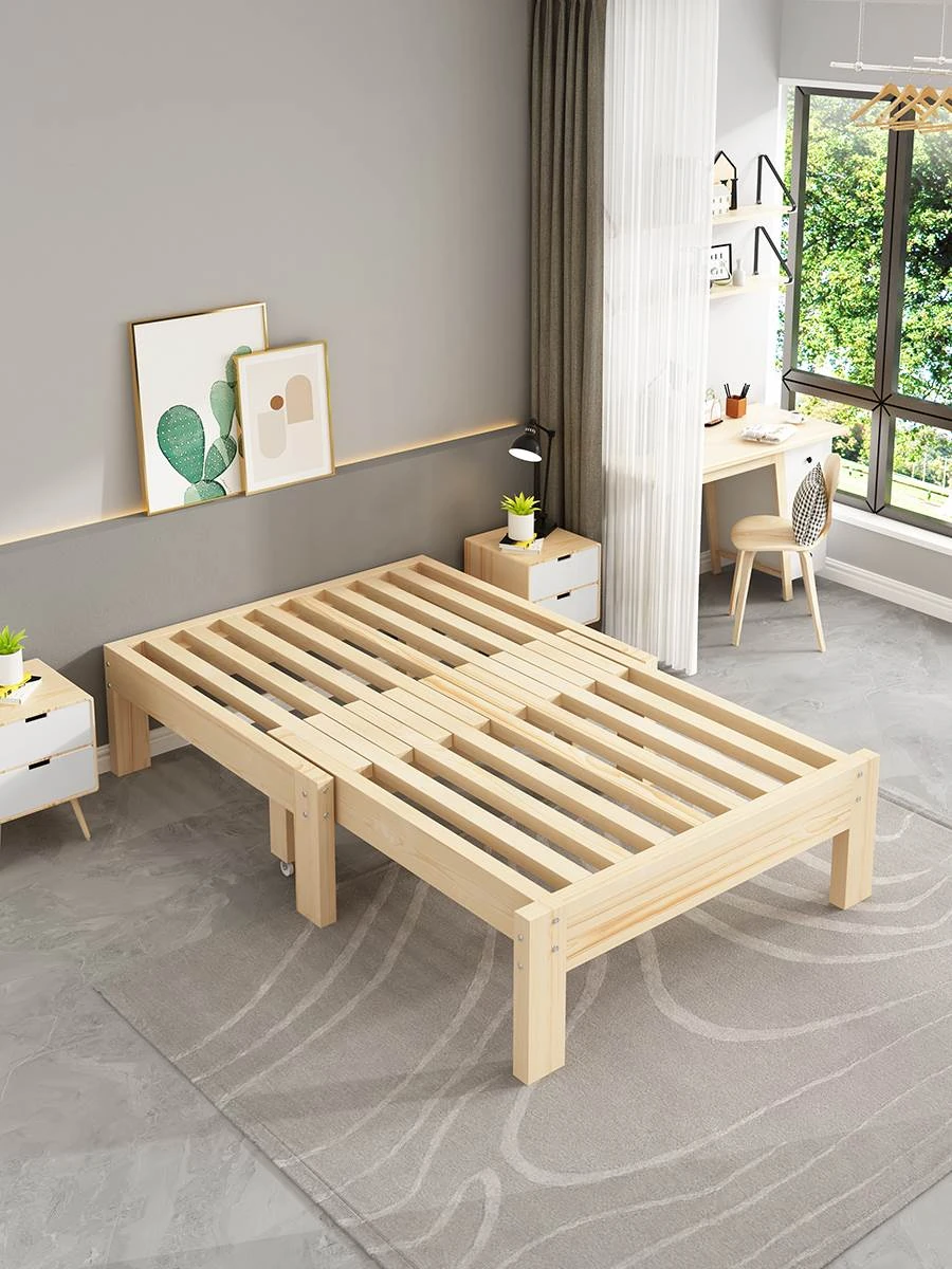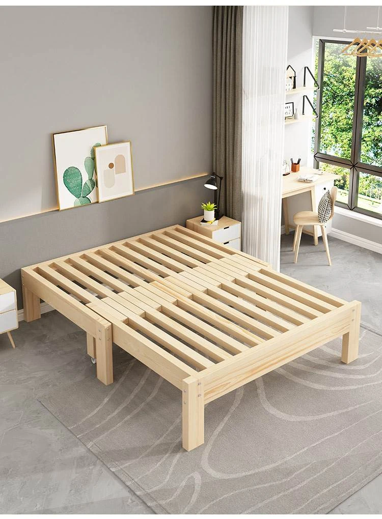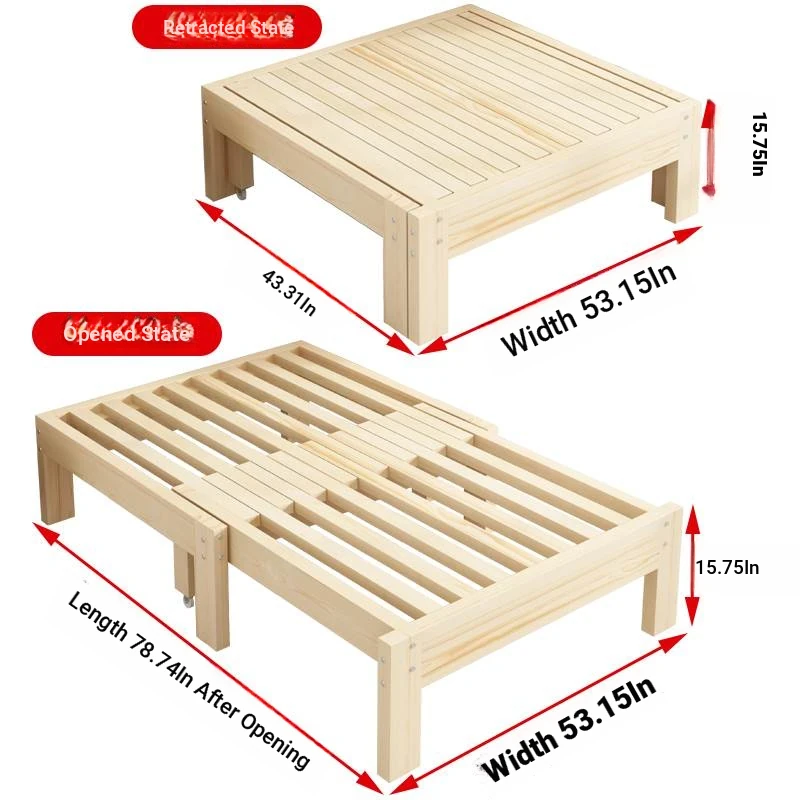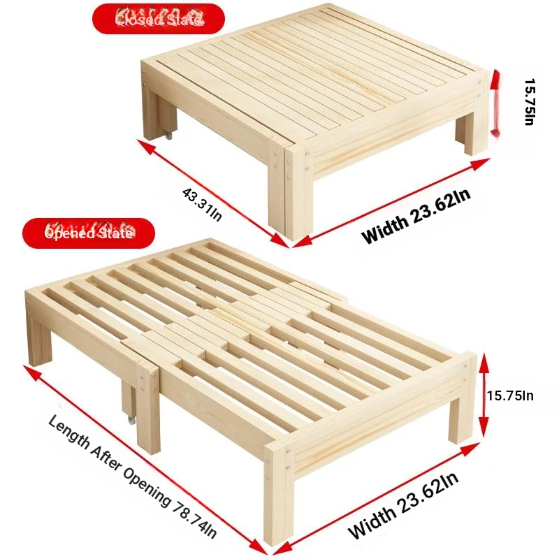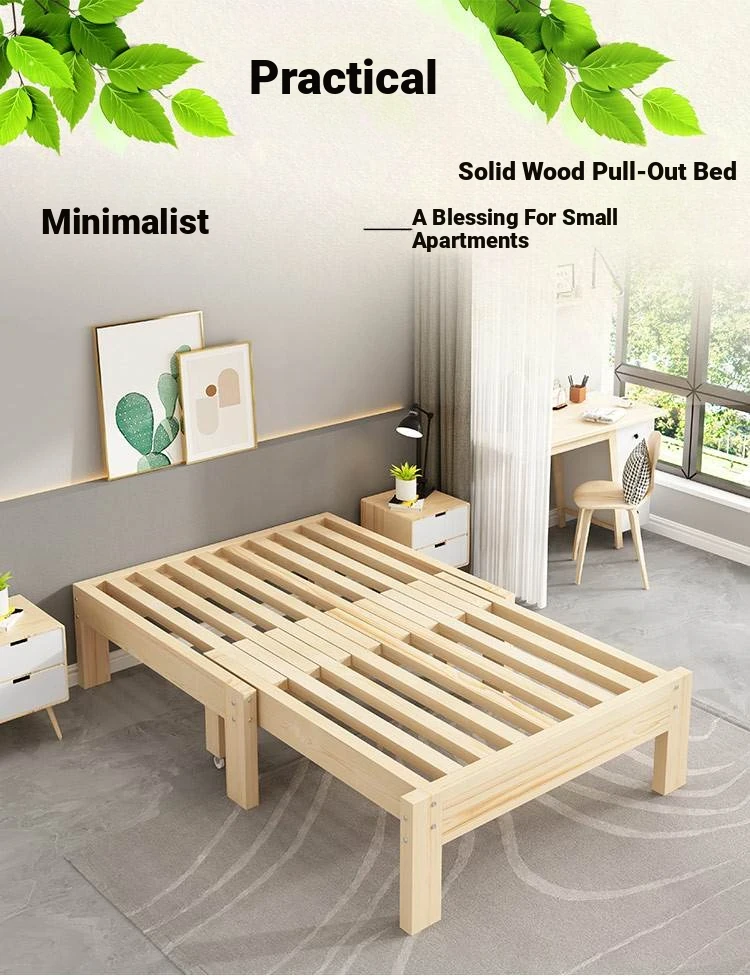 Free Shipping in Hong Kong: Multifunctional Solid Wood Expandable Sofa Bed - Ideal for Small Spaces, Pull-Out Design for Single Use, Perfect for Tatami Style!