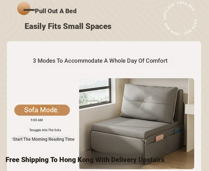 【Free Shipping in Hong Kong】2023 New Foldable Sofa Bed for One - Multi-functional Compact Design for Small Spaces and Balconies